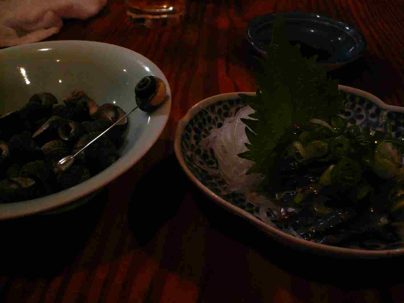 広島市中区本川町2丁目1-29 082-292-9851 今日はお疲れ様で、ちょっと呑みたくなった。 以前より気になってた居酒屋さんへ。 入るとだいぶ遅い時間なのにお客さんがいっぱいだ!! 相当人気店みたいだ。 しかし入ると黒板のメニューはだいぶ消されていた。 ううむ、もう少し早めに入ればよかった・・・。 ツブガイ・小イワシの刺身。 多分これだけで800円くらいではないかな?安い! ってよりツブガイは自分にとってデビュー戦。 これはタニシをさらに小さくした感じだろうか?これをピンでほじくり返して食べる(たまに貝の中にヤドカリが居たりする)。 味はタニシほど泥臭くなく、サザエほど苦味の無い食べやすい貝だろうか? 味も濃さは無いが貝独特の香りがある。 これなら多少の貝嫌いでも食べれるのではないかな? 食べやすいなぁ♪ 小イワシは脂身は無いさらっとしたイワシ。 ってよりイワシは香りが命だね。 この香りが食べ応えを与えるねぇ。 野菜天。500円しなかった気がする。 穴子天も売り切れになり、野菜で頂く。 野菜の中でもサツマイモとナスの香りがよかった。 野菜の独特の香りがぷ~んとして旨かった。 もう少し次はゆっくり食べようかな? ってよりもう少し早めに来ないと食べれないものが多すぎ(笑)。 でも計算をそろばんでやってる女将さんが好ましかった♪ また行きます! ご馳走様でした! PR |