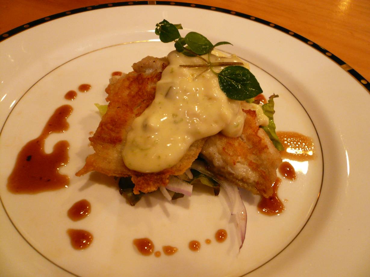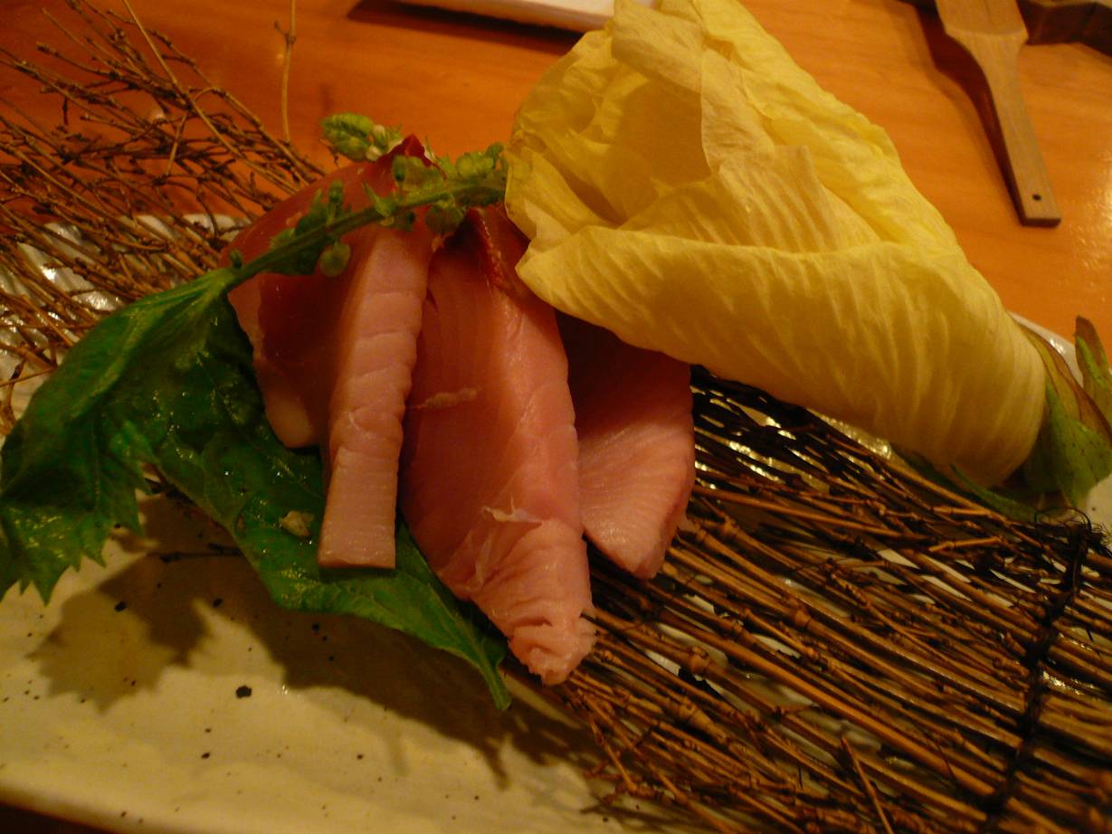 福山市御船町1丁目1-3 084-926-3538 今日は福山で食事をいただく。 わがままを言って洋食で面白い店を聞いたら、このお店を教えてくれた。 カウンターだけのお店。 いかついおっちゃんのお店だろうか。 カウンターに洋食と一品物の大皿が置いている。 居酒屋?不思議なお店だなぁ。 ご主人のお任せ(2人で2,500円くらいではないだろうか?) まずは白和え。 二日酔いが少しあったので白和えの甘さと春菊か何かの苦さが すっきりさせてありがたい。 スタートでしっかりした旨さがあるとうきうきするなぁ♪ 鰹の刺身。 鰹のとろっとした感じがいいねぇ。 あんまり血臭さもなく、脂もわりとあった。 この時期の鰹としては幸せな味だなぁ。 でもそれ以上に面白かったのは隣の花。 オクラの花らしい。 オクラの花って食べたことなかったけど、食べたら花っぽくなく、近いのはレタスかな? しゃくしゃくして香りはそんなにない。 でもめしべに近づくと独特の粘りが出てくる。 これは貴重な体験したなぁ! わかめと白菜の冷製。 ってより和食だね。 ネットリした汁で白菜やたくさんのキノコ、ワカメをあっさり食う。 気持の変化にいいのと、ワカメが凄く分厚いのが食べがいがあっていい。 丁寧な感じで気持がいい料理ですなぁ。 手作りソーセージ。 ずっしり! って感じの田舎臭いソーセージ。 沢山は重いが一本食べるには旨い! 強い味なのでマスタードやザワークラウトがあるとありがたいねぇ。 ビールが合うではないか! ライスコロッケ。 ここのお店の名物らしい。 しっかりチーズが入って香りが強く、米をぷるんとした味が面白い。 しかしかなり味は濃いし強い味。 これまたお酒に合わせる味だなぁ。 ってよりあつあつハフハフで食べれるのは嬉しい。 カウンターキッチンの醍醐味だね! 鰆の自家製タルタルソース。 鰆は独特のホコッとした身が香ばしく焼けてて旨い。 これは脂がなくあっさり食べれる中で、自家製タルタルソースがさらに重さを作らないのでいいなぁ。 少し酸味があって緑かかったタルタルソース。 茹で卵は使ってないのかな? それがこの魚によく合っていいなぁ。 手作りパスタの冷製たらこスパゲティ。 太いぷるっとしたパスタにたらこ・ハム・玉ねぎで食べる。 ご主人さんが「緑の物を合わせたかったのだけどいいのがなくてね」 って言われた。 確かに色合いはそうですね。 でもぷるっとしたパスタは旨いのだけど少し水っぽい感じ。 でも塩分は随分と強くなんだか不思議な味。 たらこって意外と難しいんだろうなぁ、って思ったなぁ。 これにビールを2杯・お茶を飲んで4,000円くらいだったかな? 安いなぁ。 ちなみに2人でだよ! ありがたいお店だ。 面白いお店だと思うし近くにあったら通うなぁ。 ご馳走様でした!