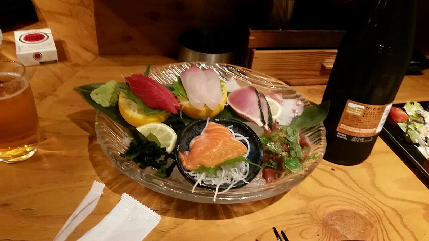 福岡市中央区天神2-6-1 092-725-4600 この日は忘年会。 ってことでまだ2016年ネタをお付き合いください(笑)。 この日は若い子が幹事をしてくれたのですが。 なかなかいいお店でした。 お店は貸し切り状態としてもらいましたが、盛り上がりもできる造りでお店の雰囲気も良かったです。 まぁ、料理は今回羅列でですがご紹介を。 刺身の盛り合わせ。 特別感はないけど、いろいろとそろっているのが嬉しいね。 人数的には一人一切れずつくらいかな。 まぁ十分です。 ビールはモルツ。 海老の串焼き。 前はカキフライかな。 こちらも一人1個ずつ。 これも特別感はないけどありがたい一品。 牛肉のたたき、そしてサラダ。 牛肉のたたきが出るなんてありがたいですね。 サラダも温玉が乗っていてとろりと。 手羽先のから揚げ。 これがなかなかのボリューム。 これにアイスもついて4,000円かな(呑み放題付き)。 最近のお店は努力が凄いな。 ありがたかったです。 また何かの会で行こうかな。 ご馳走様でした。