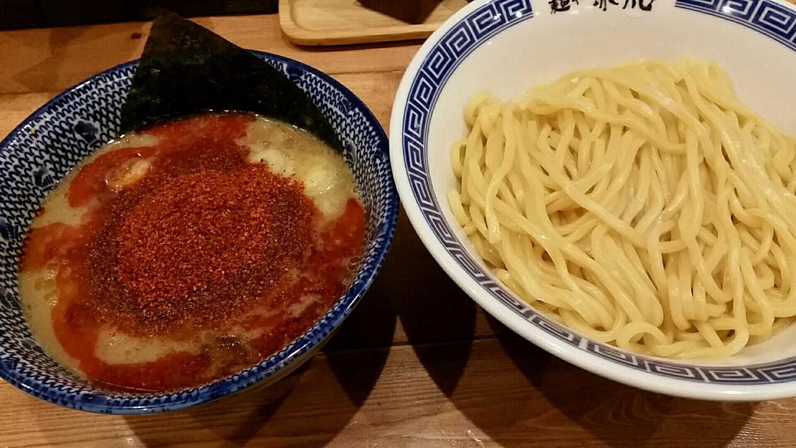 福岡市中央区赤坂1-1-18 092-726-6700 今日は久々にこちらのお店へ。 相変わらず人気のようで素晴らしい話です。 一時期スタッフが足りないなどの問題があったと思ったのですが、今は落ち着いているのかな。 夜ご飯に食べに行きましたが、かなり行列になっていました。 美味しいお店はやっぱり流行ってほしいもんね。 さて今回イベントのメニューもあったのですがノーマルのこちらを。 辛辛つけ麺880円。 相変わらずの濃厚なつけ麺ですね。 麺は中盛でお願いしてます。 麺も夜遅い時間何にコンディションは良いですね。 風味のある麺が嬉しいな。 汁は以前よりまた濃度が増した気がする。 脂の甘さがしっかり効いたつけ汁に唐辛子のインパクト。 ここは凄いですね。 角切りチャーシューは底にたくさんたまっている。 柔らかく美味しいチャーシューも特徴だね。 脂の美味さが際立った美味しいラーメンでした。 次はイベントのラーメンを食べてみたいな。 ご馳走様でした!