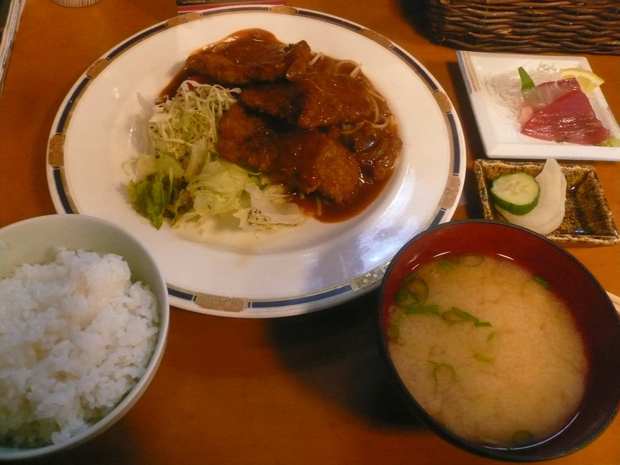 広島市西区楠木町1-8-3-1 082-232-0222 今日は実に久々にやってきたこちらのお店へ。 とても好きなお店なのになかなか行けなくて。 日記に書いてはないけど行った事は何度かあるけど少なくとも1年くらい行ってない。 でもお店の人は「お久しぶりですね」って覚えていてくれていた。 嬉しいですね。 そういった才能はお店の宝ですよねぇ。 ちなみにこの日は行ったときにお客さんが居なかった。 どうしたもんかと心配したけど後でお客さんが続々と。 そうだよね、こんなお店がお客さんいないなんて考えられないよ! ランチ735円。 今日は国産豚のカツ。 そして刺身がち手味噌汁ご飯漬けもの。 最後にメロンが一口分くらい出てきた。 素晴らしい! 豚カツは5ミリくらいの厚さかな? 豚の香りが軽く食べやすい。 脂が強くなく味わいがしっかりあるカツにソースが良く合う。 ソースはデミグラスより軽く、そして旨味がしっかりしている。 カツの下にはパスタが敷いてあるのだけどそのソースで食べるとまた旨い。 肉の旨味と爽やかな野菜の旨味が効いていてキノコの味も入っている。 素晴らしいなぁ。 思わずご飯もかけてソースも綺麗に食べちゃった。 刺身も少しだけどしっかり美味いし、ご飯も漬けものも味噌汁も美味かった。 抜かりなし! ほんとにいいお店だなぁ。 横川ランチの中でもやっぱり独走しているかも。 ご馳走様でした!! |
