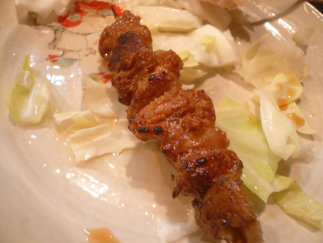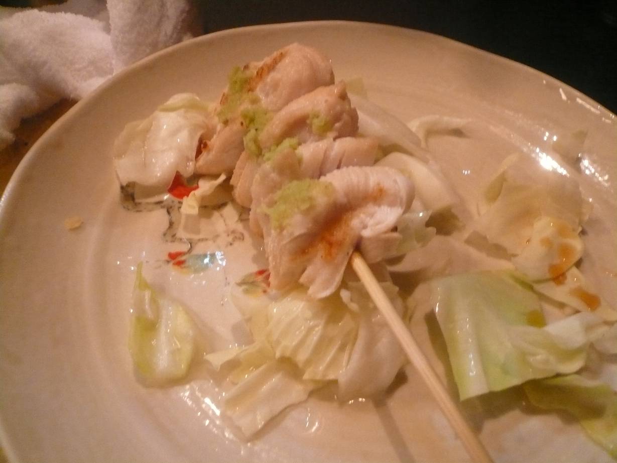 広島市西区三篠北町4-2 082-230-4211 今日はこちらで焼鳥を。 実は何回も行ってますこちら。 美味しいのは当たり前ですが、他にも理由があります。 それは接客。 僕はいつも仕事で何かあって凹んでいる時にここに行きます。 すると美味しい焼鳥を焼きながら一切話しかけてこない。 普通お客さんがいると向こうから話しかけてくるものですが。 こちらから話さない限り全く話を振ってこない。 一人でゆっくり、色々考えながら食べるには最高の場所。 反省場所として使わせていただいております。 鶏モツチャンジャ300円。 辛味の効いたチャンジャで和えた鶏モツがたっぷり。 こちらの一品物はなかなか量が多い。 下にはキャベツが敷き詰められている。 モツはコリコリしっかりした歯ごたえ。 チャンジャの違う食感と合わさって酒のつまみとしてなかなかの美味さ。 これで300円はありがたい。 ささみわさび焼き130円。 皮80円。 生つくね(なんこつ入り)150円。 どれも丁寧に焼いてくれている。 ささみは半生で綺麗に焼いてくれる。 さっぱり旨味があっていいね。 生つくねは生姜味噌味かな? 効いてて美味い。 皮はパリパリ。 甘みの効いたタレで美味い。 どれもなかなかの美味さだと思う。 後はボンジリも食べたかな? それも旨味たっぷりでよかった。 またゆっくり食べようかな? 静かにゆっくりと・・・。 ご馳走様でした!