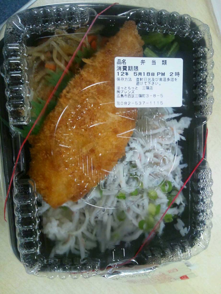 広島市西区三篠町3-8-5 082-537-1115 今日は会社でお弁当。 ってより何故か残ってしまい、もったいないので頂きました。 そんなんだから肥えるんだよ(苦笑)。 でもね、やっぱり食べないなんてできないからね♪ さて今日のお弁当は・・・。 釜揚げしらす弁当390円。 あっさりしてるかな? なんて思ったけど。 ちょっと味が抜けてる感じもあるね。 どうしたんだろう、このしらす。 でも塩分が軽くて食べやすい。 ご飯としっかり食べれる感じかな。 値段も安いしありがたいね。 次は何を食べようかなぁ? ご馳走様でした。 |