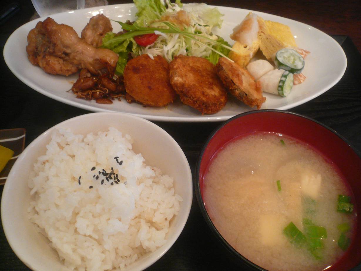 広島市安佐北区落合2-19-5 082-824-7033 今日は美味しいと言う評判を聞いて行ってみました。 11時に行ったのですがお客さんがいっぱい。 そしてみんな家族づれ。 そんな感じのお店。 家族がにこにこしながらご飯を食べ。 子供がキャーキャー言いながらにこにこしていたり。 おじいちゃんおばあちゃんがゆっくりコーヒーを呑んでたり。 そんなお店。 料理もゆっくり出てくる。 さてどんな料理でしょうかね? 日替わり定食780園。 コロッケに茄子のフライ、鶏の煮つけ、ちりめんと豆の煮つけ、出汁巻き卵、竹輪入りポテトサラダ、ご飯、味噌汁、サラダ。 定食ってホントにおかずがいろいろ食べれて嬉しいね。 ちょっと油ものが多いけど油は優しいのが良い。 綺麗な油を使ってくれているのかな? コロッケはジャガイモがあまり潰していないタイプ。 コロコロした芋に人参とかは言っていて家庭的だね。 茄子も醤油ベースの味が付いていて何もつけなくてもいい。 他のおかずもそうだけど少し味が強めに付いているから濃く感じるけど。 お米が美味しいのでなかなか食べれる。 ご飯が美味しいって大事だよねぇ。 しみじみ感じました。 美味しかったなぁ。 次はモーニングも食べてみたいな。 面白そうなメニューが揃ってたしな。 ご馳走様でした。