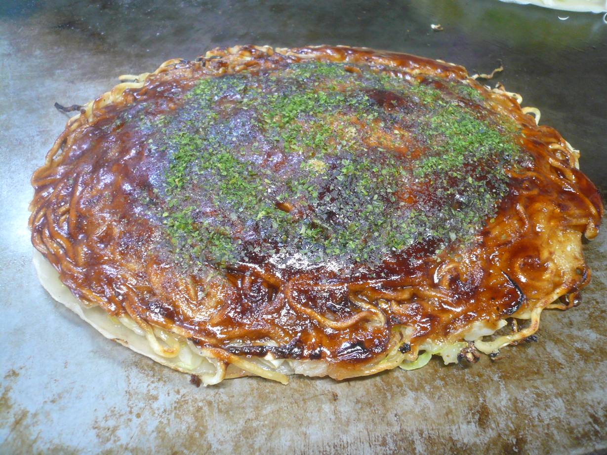 府中市府中町227 0847-41-3718 今日は友人に勧められて行ってみたお好み焼き屋さん。 地元に愛されてそうなのんびりした雰囲気。 とりあえず時間がかかるので予約をしておくといいよ、って聞いていたので30分前に予約をしておいた。 入ると何と満員! 凄いなぁ、って思えるな。 こういった個人店ののんびりした雰囲気でお客さんが待っているなんて。 どうやら焼くのも随分と時間がかかるらしい。 なるほど、予約は正解だね。 肉玉ソバ500円。 挽肉で焼くお好み焼きで麺がパリパリになるのが特徴かな。 そう言うイメージだったけど、これは素晴らしいな。 パリパリに焼いているのはよく焼いているという形で、脂で揚げている感じではない。 カリサクしているのにあまり脂っぽくないのがいいね。 キャベツも府中風のお好み焼きは少ないと聞いていたけどしっかり入っているから甘い。 卵がかなり硬めでぽくぽくした美味さだけどなんだか素朴でいい。 こりゃ500円だとしたらかなりいいな。 ってよりこれが府中風のお好み焼きかぁ。 美味いなぁ。 ここはいいなぁ。 また行きたいな。 ダブルを頼んでいる方を見ると結構な量だったけど食べてみたいな。 ご馳走様でした!!