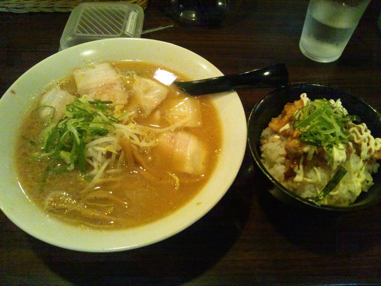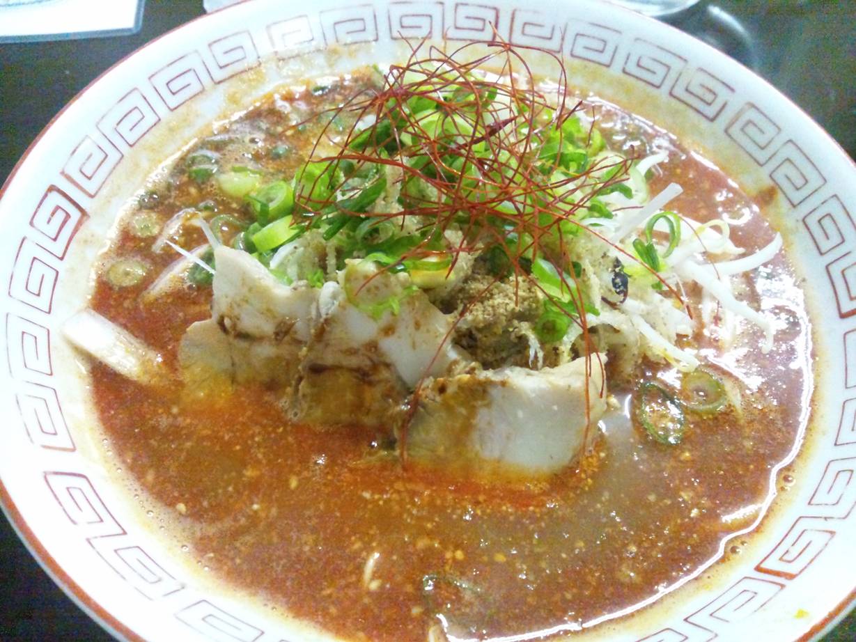広島市安佐南区西原2-9-30 082-555-5074 今日の夕飯はこちらでラーメンを。 ちょっと辛いものが食べたくなって、ひょっこりと。 そう、僕にとってかなり辛い料理と言えばこちらのつけ麺を思いだす。 辛くて泣きながら食べた記憶がある。 それを食べようと思ったけど最近激辛ラーメンがあるそうな。 どっちにしようかな? ホルモン天。 お客さんに頂いた。 ぷりぷりしたホルモンがたまらないね。 衣を薄くつけているので表面がカリッとしていて、脂がジュワっとでてくる。 これでビールがたまらないよね。 美味しいです。 激辛ラーメン750円。 見た目は辛そう。 でもね、これがなかなか美味い。 辛さで美味さがわからなくなるくらいのものではない。 それが嬉しいね。 しっかり旨味が強いスープにキムチのような酸味が後にあって美味しいね。 麺ももちもちしていて旨味があるし、でも油が強くないので後もすっきり。 美味かったなぁ。 チャーシューもしっかり脂の強いものだったけどくどくないし美味かった。 また行きたいけど、やっぱりつけ麺が食べたいな。 次行く時は暑いころだから丁度いいよね。 ご馳走様でした!