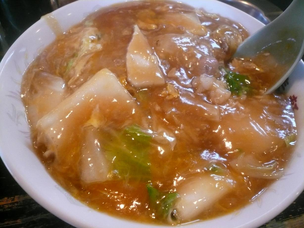 広島市安佐南区長束5-39-15 082-230-1233 今日は以前から気になっていた中華料理屋さんへ。 ホントにアットホームな感じできっと間違いがないだろうな、って思っていた。 やっと行けたな。 入ると家族ずれのお客さんが多い。 予想通りだな、なんだかほっとするもんなぁ。 なんて思って座って横の人を見ると。 ランチのご飯やおかずが多いこと多い事。 こりゃ食えん! って思って単品で。 野菜も取りたいのでこれをチョイス。 中華丼600円。 野菜(ってより白菜)がたっぷり、餡がたっぷりご飯がたっぷりの丼だ。 野菜がしゃきしゃき、肉がジャンクで美味しいなぁ。 餡は甘みが無くてすっきり系。 なかなかいいなぁ。 量が多いのでちょっと飽きてきて途中で七味唐辛子をかけたらアクセントになっていいなぁ。 予想通り良かった。 美味しかった。 次はお腹をすかして定食だな。 こりゃまた行ったら楽しいだろうな。 ご馳走様でした。