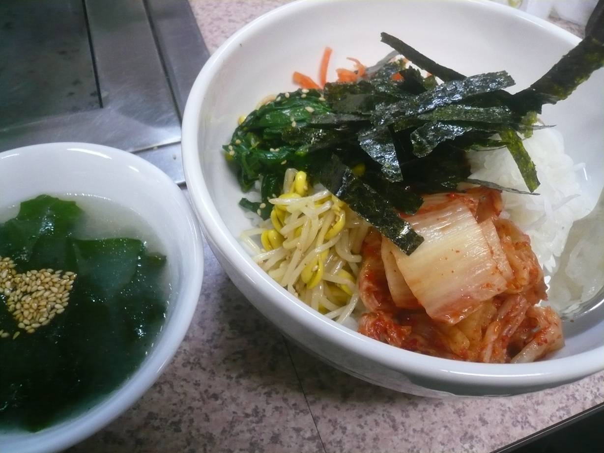 広島市安佐南区長束3-23-3 082-239-9006 今日は以前から気になっていたお店へ。 ピビンバをメインにしているお店。 以前はお好み焼き屋さんだった気がするのだが、開いているのを見たこと無かったな。 入ると鉄板が目の前にあり、鉄板焼きを楽しみながら〆にピビンバかな? なんて思っていたけど、お客さんはピビンバだけ食べたり、韓国料理をおつまみにビールを楽しんだりしている。 気軽な感じでいいですね。 お店の人は店主一人。 関西弁を使われているが広島の方らしい。 せんまい。 茹でたやつでしょうか? クニクニした食感が独特。 かなり甘いジャン(チェジャン?)で食べたけど、甘さがジャンクさを生みだしてなんだか癖になる。 これでビールなんていいね。 キムチピビンバ780円。 野菜がたくさん入ったピビンバにワカメスープが付く。 よく混ぜるとやはりジャンの甘さが際立つ。 もちろん辛みもあるのだけどとにかく甘さが感じる。 野菜はたくさん入っているので食べやすいし美味しいね。 肉は筋肉が入っていたのかな? コリコリっとした食感が面白い。 かなりジャンクな感じが面白い。 ワカメスープは出汁がしっかり効いていて美味しい。 ってよりワカメスープは上質ですね。 美味しい。 これをピビンバにかけて食べるとまた旨い。 こりゃなかなか楽しい料理だ。 美味しかった。 なんだか韓国料理を楽しむお店としていいかもしれないね。 次は絶対チゲを食べたい。 ご飯も付いていていい感じだったから。 ご馳走様でした!