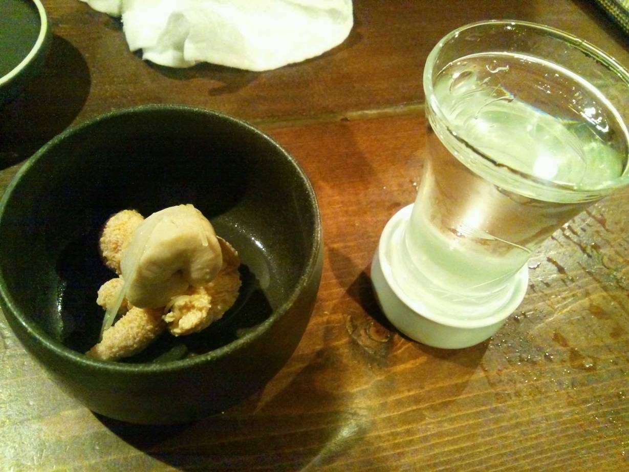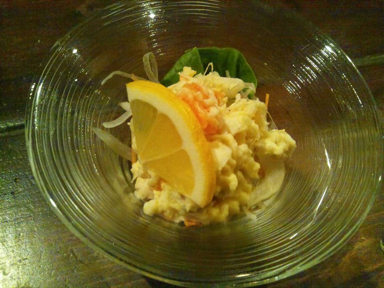 広島市中区流川町1-14 082-241-7780 今回、ずっと気になっていたお店へ行ってみました。 こちらのお店、ツイッターなどで情報が流れていい店だと聞いていました。 でも場所がわからない。 なんて思っていたがフラッと動いていると見つけた。 せっかくだから行ってみよう! ってことで入店。 入口がわかりにくかったが入ると綺麗な空間が待っていた。 こりゃいいな、なんて思ってうきうきした。 スタッフの人は真剣そうだし、みんな美味しそうに食べている。 それだけで期待してしまうね。 つきだし。 白子と卵。 臭みも癖もなくあっさり。 綺麗に煮えているつきだしだと思う。 美味しいね。 まずは安心して食べれました。 ポテトサラダ。 これも癖のない味。 マヨネーズの強さもないし、芋の強さも感じ無い。 食べやすいですねぇ。 お酒に合わせるには少し弱い気もするけど美味しいのでいいかな。 お刺身盛り合わせ900円。 4種類出てきた。 どれも味付けが既にされており、醤油入らない感じ。 仕事はされているし素晴らしいと思う。 甘みも効いているし、食べやすい。 この食べやすさがなんだか不思議な感じを生みだす。 美味しいけど、ちょっと物足りない気がするなぁ。 いや、普通の店なら思わない感想だな。 美味しい素晴らしいお店だから、この丸く落ち着いた感じが物足りなく感じる。 コースとかなら変わるのかな? また行かなくては。 ご馳走様でした。