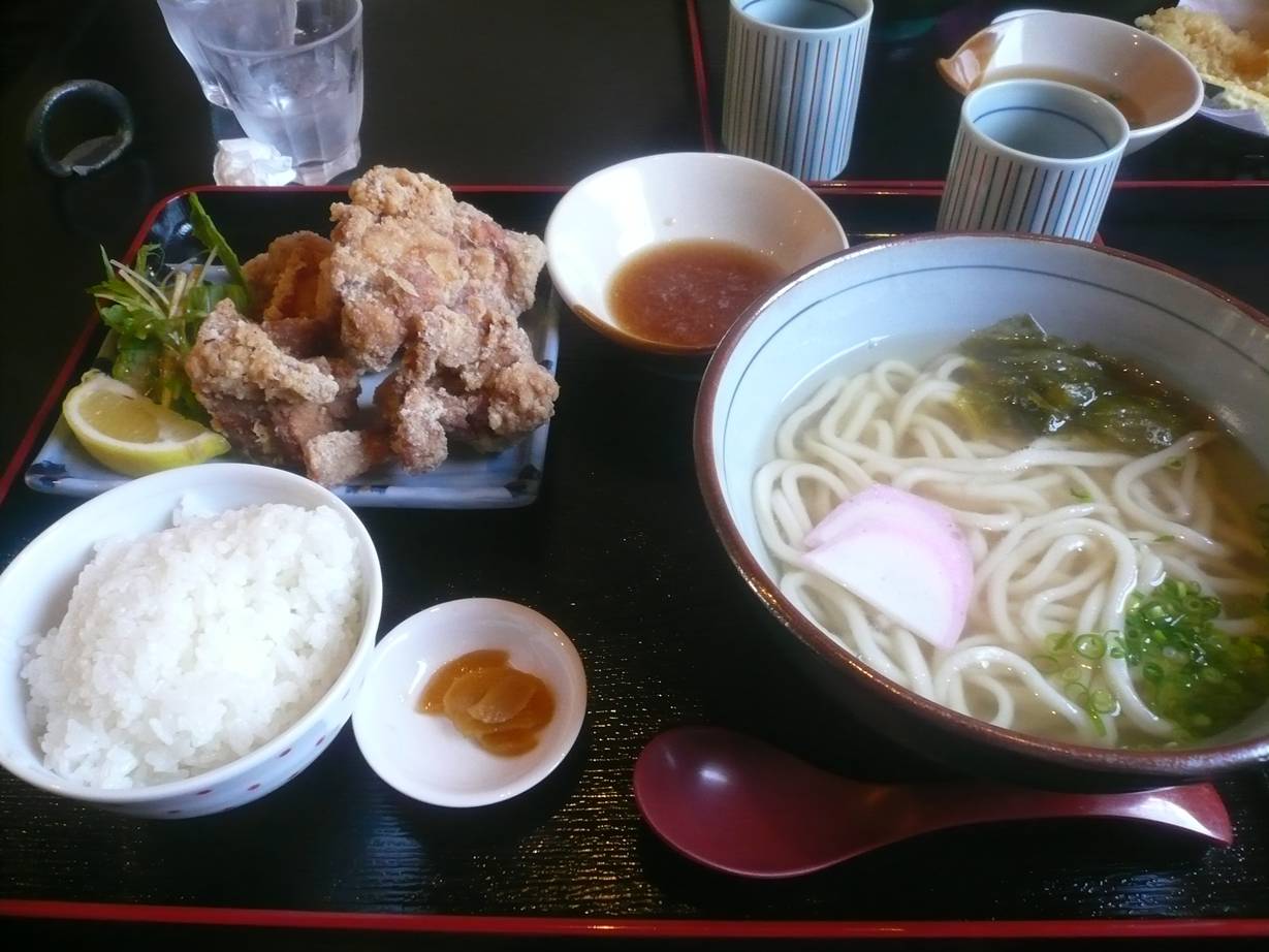 広島市安佐北区口田南8-14-15 082-845-8400 今日は無料雑誌「まるごと安佐南安佐北」という物をパラパラ見ていて気になったお店へ。 「ひろしまうどん」って書いていた。 なんだそれ? って思って。 そして周年祭だったみたいで。 お得なメニューが並んでいるらしい。 試すにはいいや、って思って訪問。 お店は座敷もあるし広々していてありがたい。 さて今回は腹も減ってるのでセットを頼もうかな。 唐揚げセット690円。 いつもより少しお得になっているみたい。 ってこの値段でこの空揚げの量は凄いな。 大きな唐揚げが6個! 揚げたてで熱々。 少し脂っぽく感じるのを酸味の効いた大根おろしのタレで食べると食べやすくなっていいね。 これは嬉しいな、うどん屋さんの唐揚げでこんなに満足するなんて。 うどんはわりと細めでもちっとした腰。 これが広島うどんなのかはわからないけど、丁寧に準備してもらってる味だと思った。 出汁は軽い感じ。 昆布が効いてると思ったのはトロロ昆布の効果は不明。 しかしお腹いっぱいになるね。 天麩羅セット850円。 天麩羅も揚げたてなのが嬉しい。 うどんはぶっかけにしてもらった。 かなり汁が甘めなのが気になったかな? あと天かすはちょっと油っぽくてどうしたもんか? でもそれ以外はかなりいい印象。 美味しいね。 葛餅。 クーポンを渡したら出してくれた。 柚子か何かの香りがした。 美味しいね。 甘すぎないし、食べやすい。 いやぁ、お腹いっぱいになりました。 ボリュームもサービス。 ありがたかったです。 子供がいても行きやすいし。 また食べたいな。 ご馳走様でした!