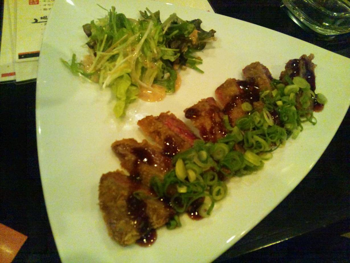 広島市中区紙屋町1-5-3 082-241-8138 よく二毛作営業と言うものがある。 昼と夜と違う飲食業をするお店。 昼はラーメン、夜は居酒屋、なんて感じ。 広島でもたまに見かけるようになりましたね。 こちらのお店は昼が蕎麦屋さん、夜は居酒屋さんになっている。 昼の蕎麦は「禅」さんというお店。 一度行ってたのですがそれっきりになってしまっていた。 実はツイッターでフォローされていてまた行かなくては。 なんて思っていました。 やっと行けた。 お店は昼の時と雰囲気が同じですね。 メニューを見ると蕎麦もありますし。 でも特徴は全てのメニューが390円と言うことでしょうか。 ビールも日本酒も料理も全て390円。 凄いね。 さてさてどうでしょうねぇ? たこぶつ390円。 タコは冷凍されていてまだ凍っていた。 シャリシャリとした食感がちょっと不思議に感じる。 だんだん解凍されてくると甘みが出てくるね。 まぁ値段的にもありがたいメニューかも。 あと凄く醤油が甘かった。 ちょっとこれもびっくり。 牛カツレツ390円。 お勧めを聞いたら断然これと言うことで。 牛はかなりレア。 やっぱり牛って癖があるね。 ちょっと独特。でもカリッとした衣で食べれる牛って美味しいね。 ソースはとんかつソースかな? ちょっと甘めでなんだか贅沢なメニューなのに懐かしさを感じます。 面白いメニューが多いですね。 ちなみに日本酒は獺祭大吟醸なんてあったし(これも390円)。 蕎麦も390円。 かなり頑張ってますね。 また行きます。 ご馳走様でした。 PR