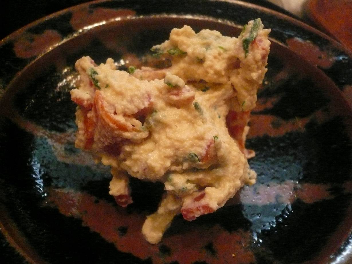 広島市西区横川町2-9-7 082-296-6261 今年もクリスマスディナーはこちらで。 2年連続かな? 最近食生活が変わりやはり野菜メインにしているだけに、こういったディナーをクリスマスに食べれるなんて面白いでしょ? 今回はユリ根をメインにした料理が並ぶらしい。 ドキドキしますね(笑)! ゴマ豆腐。 ホントはゴマアレルギーなので食べちゃいけないのかもしれませんが。 好きなので食べました(笑)。 相変わらず独特の食感。 柔らかくむちっとした上等な葛餅のような。 それともまた違うな、何とも言えない食感で美味い。 今回は金箔なんて散らしてますが、そんな演出を吹っ飛ばす味。 いやぁ、美味いな。 蒸し炒め。 むかご・銀杏・ユリ根を蒸して揚げ炒めた牛蒡と合わせたのかな・ むかごがほくほく、ユリ根もほくほく。 でも食感が違う独特の美味さ。 ユリ根って甘みがあって美味いな。 牛蒡もごりっとした食感と少し強い味付けが良く合っている。 とてもいい取り合わせでお酒に合うな。 金時人参のスープ。 スープと言うよりすりながしだろうか? 甘くてたまらない、独特の風味の人参がたまらない。 そしてこの大きな白い身。 なんとユリ根。 こんな形に鯖いたんだ。 びっくり! こちらも食感はほくっとして美味しい。 少しずつ食べて行くのがいいな。 こんな料理はなかなか食べれないし、貴重な経験だった。 白和え。 僕はここの白和えが好き。 豆腐のどっしり感、ゴマの風味、味噌の強さ。 全部がちゃんと組み合っているのが凄い。 具材は金時人参、春菊、リンゴ。 どれも上手に合わさっている。 やはりここの白和えは別格だな。 湯葉巻き。 湯葉が素晴らしい。 この言葉に尽きる料理。 湯葉に無駄な味わいな無いすっきりしたものなので。 どんなものを巻いても美味いだろうな。 そんな事を思いながら熱燗をクピクピ呑んでいた。 たまらんな・・・。 炊き合わせ。 みんなユリ根の美味さにビビっていた。 確かにユリ根の甘みが際立った独特の美味さやその身の立派さに驚いたが。 それ以上に驚いたのは僕は蓮根。 サクッとした食感は無く。 粘りのある無にっとした食感になっている。 そしてとても甘い。 こんなレンコン料理は初めてだな。 蓮根を丸のまま煮たらこんな風になるらしいけど、家ではできないよ。 やっぱり凄いな。 ご飯と漬物が入り(これもかなり旨い)、最後にみかんのゼリーで終了。 みかんのゼリーにはレモンがたっぷり入っているらしいけど。 酸味の効いた味わいがたまらないね。 甘みもあるし、よかった。 やっぱり美味かった。 こんなクリスマスもありだね。 次は蕎麦を食べたいな。 ご馳走様でした!!