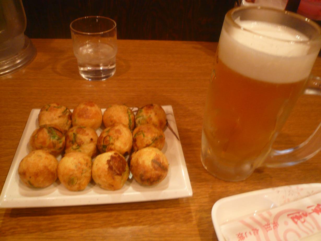 大阪市北区梅田3-2-136 06-6346-3444 今年も最初はこちらのお店へ。 大阪へ買い物に行って早く開いてるお店ってこちらになるんですよね。 他にお勧めがあればいいのですが。 僕はこちらでビールとタコ焼き。 ってのが定番になりつつありますね。 ビール300円って安いし。 ラジ玉焼き700円。 スジとこんにゃくのたこ焼き。 ちょっと小さく切りすぎかな? って思うのだけど。 食感があまり強くない。 でも味はやはりいいね。 出汁は弱くなったけどそっちの方がいいと思う。 これでソース無しで食べれるのが嬉しいし。 ビールにも合うね。 今年もありがとうございました。 ご馳走様でした!
