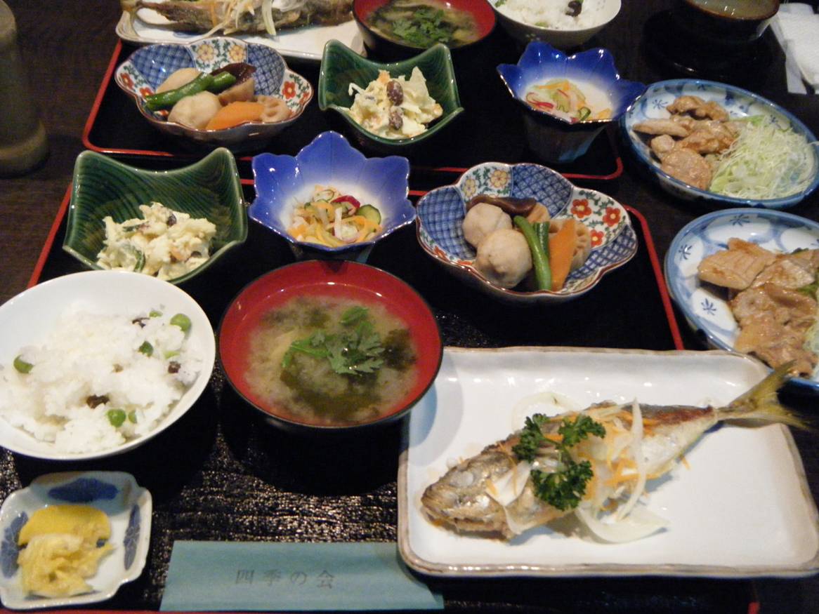 広島市中区堀川町4-4 082-247-7654 今日は友達夫婦とランチ。 奥さんは再来月ご出産。 おめでたい話です。 そのあたりの話をゆっくりしながら、安心して食べれるお店と思い、こちらをチョイス。 座敷もあり、街にあるので行きやすく、食べ物が安心して、そして美味しい。 いい感じでそろっているし、定食ってのも大事。 バランスがいいから妊婦さんには特にいいから。 お店は奥に隠れた感じの暗いお店ですが。 入ると女性ばかりが笑顔で対応してくれる。 気持ちいいお店ですね。 お任せランチ1,000円。 土用はお任せだけ。 メインは豚の生姜焼きと鯵の酢漬け。 そして野菜がたっぷり、豆ご飯はグリーンピースとむかご。 美味しいご飯がたっぷりあるのが嬉しいし、味噌汁もさすがに美味い。 野菜たっぷりの味噌汁って美味いなぁ。 豚の生姜焼きはちょっと豚の癖が気になったけど鯵はとても旨かった。 甘みが無くさっぱりしていて旨かった。 どの野菜も旨味があるしやはりいいお店だなぁ。 この後、柿とコーヒーが出て〆。 ゆっくりできるし美味しかったなぁ。 いい店ですね。 一度夜も行ってみたいな。 ご馳走様でした!