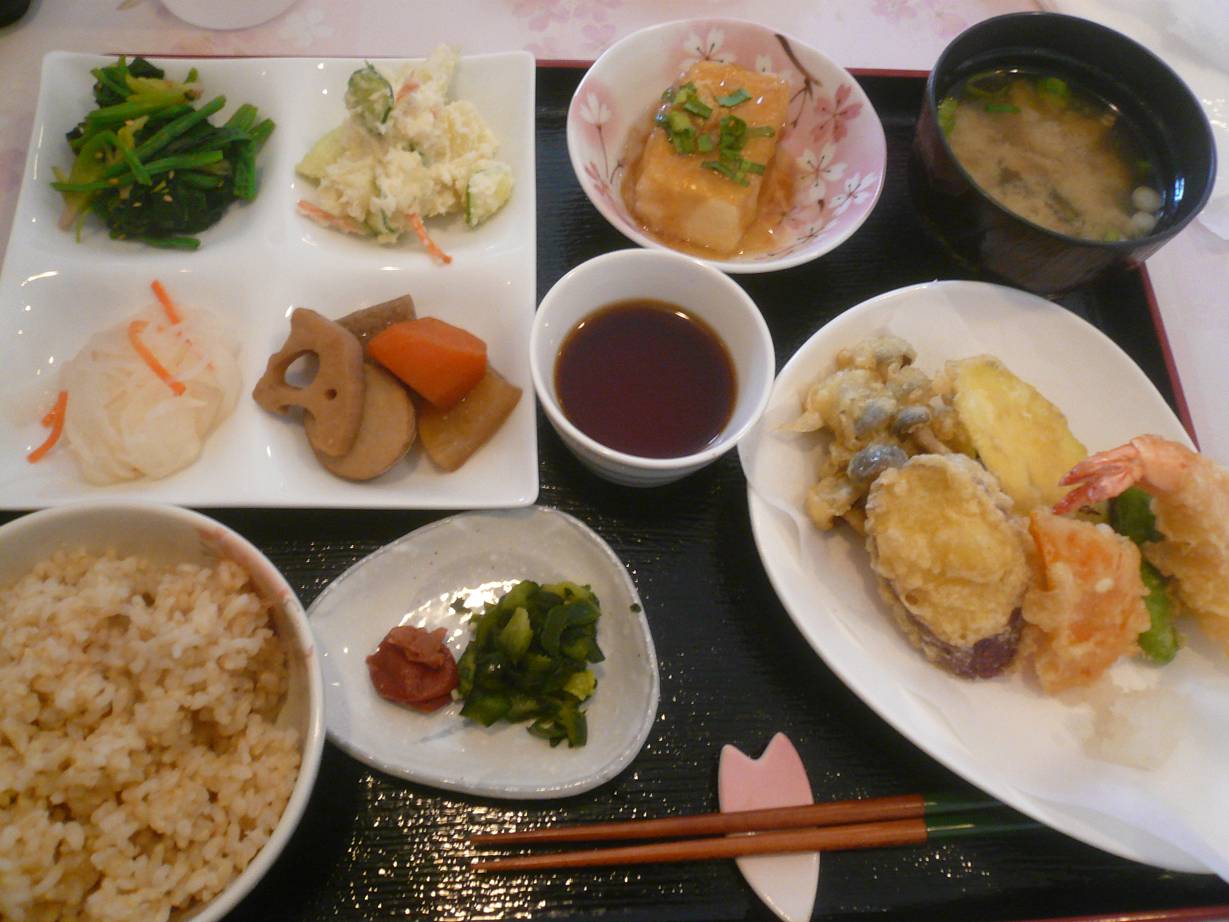 広島市西区庚午北3丁目12-16 082-274-6662 今日は高須駅そばのこちらのお店。 車で行ったのですが。 道が細くて少しビビりました。 行くとしたら電車の方がいいかも。 お店は綺麗な喫茶店的な雰囲気。 入ると温かい空気があり、なんだか落ち着くな。 落ち着いたお客さんが多く、お店の雰囲気に合っていた。 景色もいいし、なんだか時間がゆっくり過ぎて行くなぁ。 SAKURA Happy Lunch 1,580円。 このメニューは前菜をバイキング方式で取りに行き。 メインを後から持ってきてもらえる形。 とりあえず前菜を選ぶのだけど。 一人一回だけお皿に盛る形になる(お代わり不可)。 なので我がままだがある前菜を全部取ってきた(笑)。 牡蠣フライや小鰯の南蛮漬けなどもあったけど。 やはり野菜が多いのは嬉しい。 カキフライは冷えてしまっていたけど香りがあったし。 五目ヒジキは味が強くなりすぎないところが良かったなぁ。 メイン。 メインもいろんなメニューがあったけど僕はタジン鍋をチョイス。 実はタジン鍋って食べたことが無かったんですよね。 なるほど、綺麗に蒸せてるし味が薄まることもないし。 いいですね。 野菜がたっぷり入ってるし、鯛も美味しい。 ポン酢も美味かったなぁ。 玄米と野菜のいきいきランチ1,260円。 相方はこちらをチョイス。 玄米はぱらっとしたタイプではなかった。 圧力釜かな? 他は食べてないけど、僕の前菜と天麩羅があるのかな? 美味しいそうだったけどほとんど食べてないからわからないな。 でもこちらも野菜たっぷりで嬉しいね。 デザート。 僕はチーズケーキ。 相方はシフォンケーキ。 チーズケーキは結構濃厚系。 シフォンケーキはふわふわで甘みがある。 これもなかなか美味かった。 実は味噌汁が残念な部分があったのですが、それ以外はほんとに美味しかったです。 これだけ食べても胃はすっきりしてたし。 また食べに行きたいな。 ご馳走様でした!
