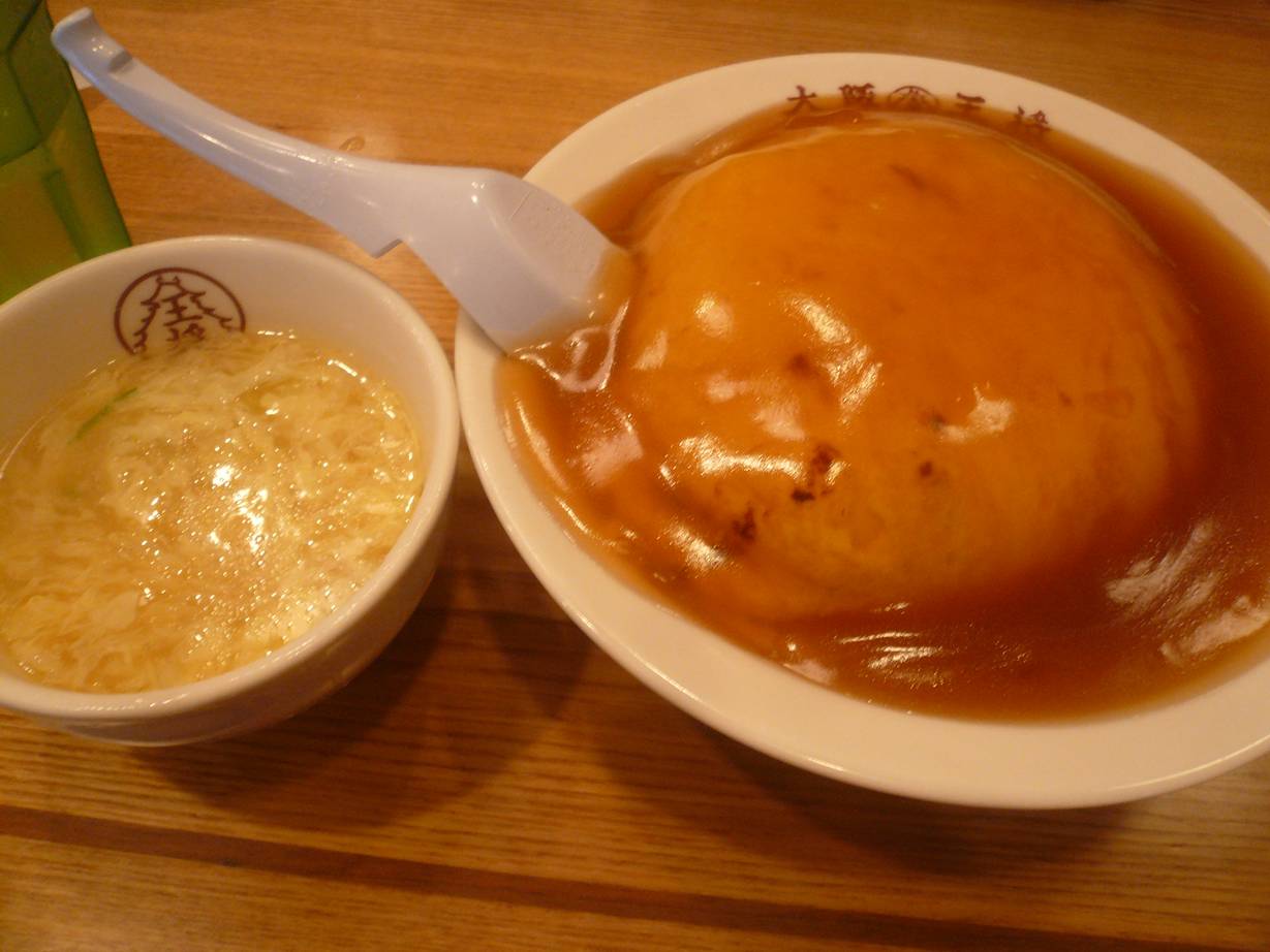 広島市安佐南区大町西1-12-27 082-831-8686 今日は実は関西人なんですが初めての大阪王将さん。 たぶん僕は京都王将ばかり行ってきたと思います。 違いはよくわからないのですが、違う店らしいですね。 こちらの大町店は去年くらいにできたのかな? 綺麗なお店だしメニューは安いし、ここはここでいい店ですねぇ。 きっと。 味もあえばいいなぁ。 餃子210円。 誰かが大阪王将の餃子は化学調味料を使っていないと言ってた(店内で)。 いやいや、たぶん使っているでしょう(笑)。 でもニンニクの風味とジャンクさがあいまって美味いと思う。 これだけはっきりとした味付けなら意外とビールと食べると好きになるかも。 高級な味ではないけど、これはこれでありではないでしょうか? 天津飯390。 スープ付き。 天津飯がフワフワとしていて面白い。 白身を泡だてて作ったのかな? 具が無いのは面白いなぁ。 でも、あっさりしすぎてて途中で飽きちゃった。 ちなみに2/3にしてもらえるのもあるらしい(30円引き)。 そうしてもらったらよかった。 でも安いしいいね。 王将系は凄いな。 ご馳走様でした。