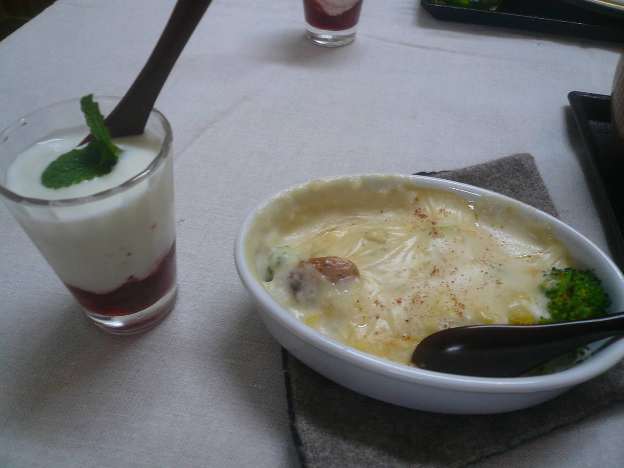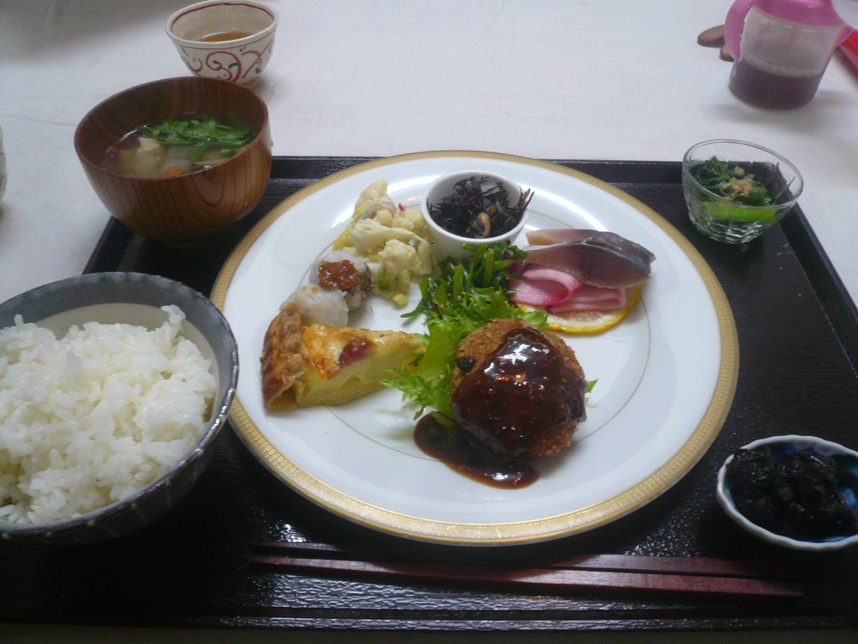 広島市安佐北区白木町大字秋山2489-1 082-828-0522 今日は随分と車で走ったなぁ。 一時間近く走っているとやっと見つけた。 ってより普通の民家でした。 看板も小さいし、わかりにくい。 でもお客さんはたくさんいたなぁ。 こちらは喫茶店と言うか、定食屋さん。 ケーキを食べたり、ランチをしたり。 みんなのんびりしてました。 ランチ1,050円。 自分たちで野菜を作り食べさせてくれる自然食のお店。 メインは蓮根とミンチのメンチカツ。 それに自家製の〆サバ、キッシュ、里芋、サラダ、ヒジキ煮、黒豆、青菜のお浸し、具だくさんのお吸い物、ご飯。 たくさんの種類は全て自家製らしい。 メンチカツは蓮根がねっとりとした感じで甘みが効いてて凄く美味い。 この美味さは独特だね。 ソースはマスタードとイチジクのソース。 面白いなぁ。 〆サバは少し癖が残っていたかな? 蕪に巻いて食べると美味しい。 どれもしっかりした味付けだけど濃すぎないのは嬉しい。 この後熱々のグラタンとデザートのヨーグルトとイチゴのジャムが出てきた。 グラタンもクリームが軽くて和食っぽいね。 美味しいな。 どれも美味しかったです。 遠かったけどそれを差し引いてもまた行きたくなるお店ですね。 のんびりした雰囲気だし。 子供が居ても安心かも。 ご馳走様でした! PR