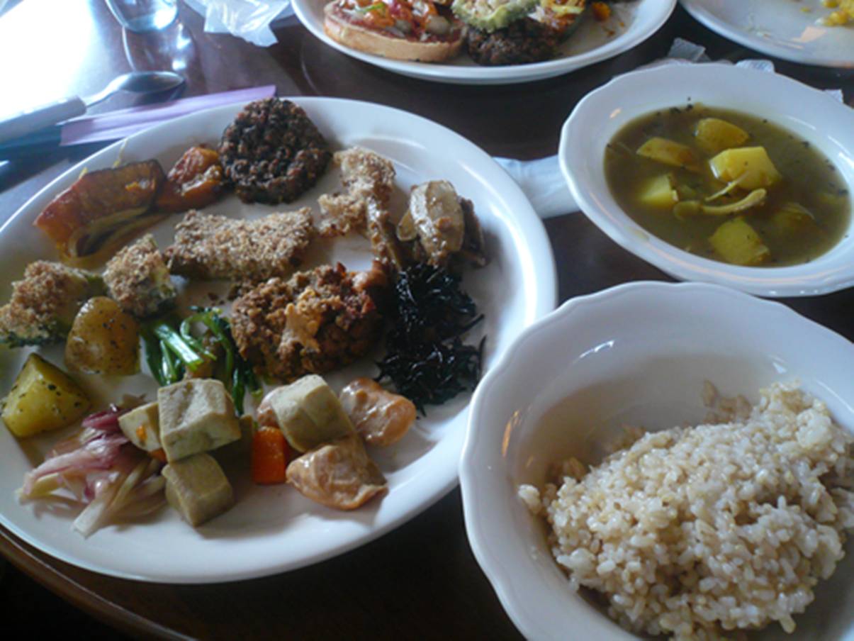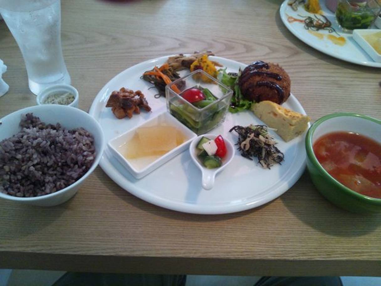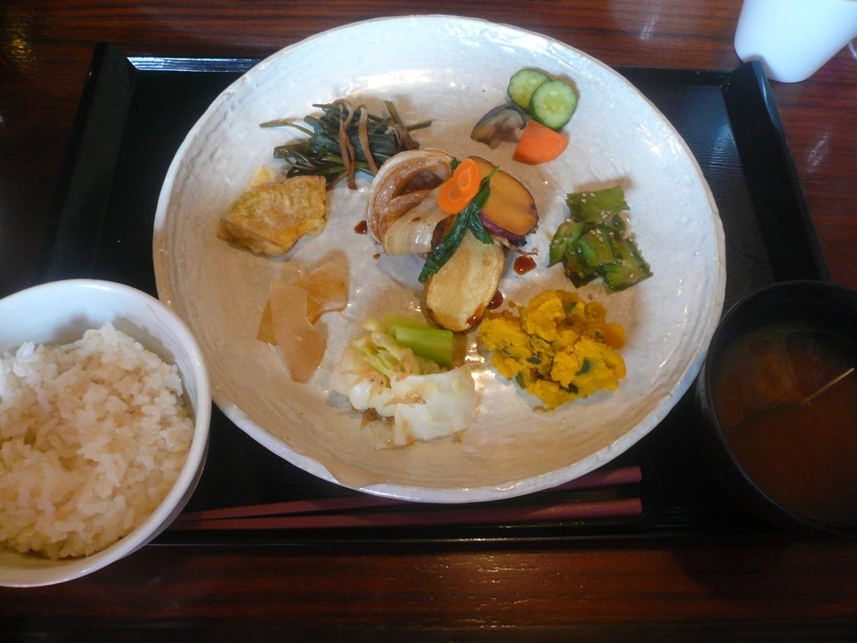 082-435-2326 ビュッフェランチ1,200円。 特徴としては。 肉・魚・卵・乳製品などの動物性を使わないらしい。 凄いな。 なにせ。 ビュッフェスタイルとはいえ,、種類が多い。 こんだけ野菜が食べれたら嬉しいね。 高野豆腐の炊いたものや、牛蒡のあんかけ、里芋コロッケなんてとっても旨かったなぁ。 これだけ美味しく食べれたら、野菜だけでも満足感が高い。 それよりも。 自然食をうたっているお店って、変に味を強くする傾向がある気がする。 それだけで満足させるためにだろうけど。 それって邪魔してるだけな気もするんですよねぇ。 また行きたいな。 ここなら高速を使ってでも再度行っても満足できると思う。 ご馳走様でした!!