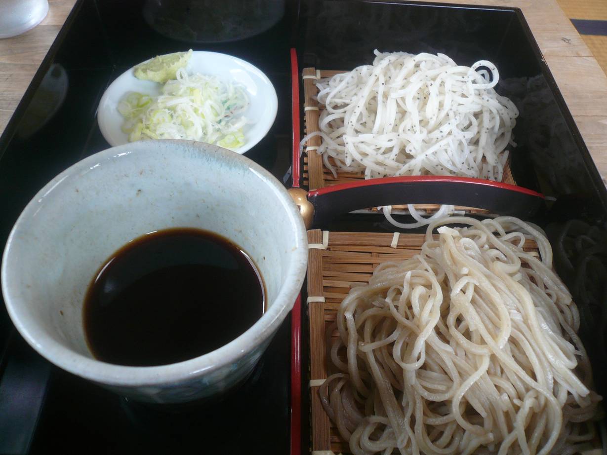 082-842-5081 二色蕎麦1,050円。 二色うどん1,050円。 ちょっと民家的なところにある綺麗な、いや、ほんとに趣のあるお店。 「あしゃぎ」さんとはまた違うが、蕎麦屋さんがこんな造りであれば風情があっていいなぁ。 まずは蕎麦かりん糖が出てくる。 かりかりしてお茶うけにいい。 蕎麦の二色は普通の蕎麦と、ケシ蕎麦ということ。 ケシ? あのケシ? 食べていいの?? なんて思いながらも言葉にしないで食べました。 普通の蕎麦は少し硬くツユも硬い味の印象。 ううむ、こんな感じかな。 なんて思ってケシ蕎麦を食べる。 まずは食感のぱきっとした歯触りが独特。 蕎麦っぽくない不思議な感じ。 その後独特の香りが襲ってくる。 これは面白いね。 ボリュームは軽め。 かなり軽いのでもう少し欲しいなぁ。 なんて思っていたけど。 蕎麦湯がたっぷりあったのでお腹が温かくなって満腹になった。 少しとろりとした蕎麦湯が嬉しい。 うどんはちょっと細め。 餅っとした柔らかいうどんで温かいのも少しくれたが明らかに冷たい方が美味しい。 腰を求めると違う気がするが、くにっとした食感は気持ちいいね。 最後に何故か一口分の辛味大根のおろしうどんがついてきた。 サービスが素晴らしいなぁ。 次はお酒と共に。 夜にいきたいんだけどなぁ。 ちょっと遠いけどね(苦笑)。 ご馳走様でした。