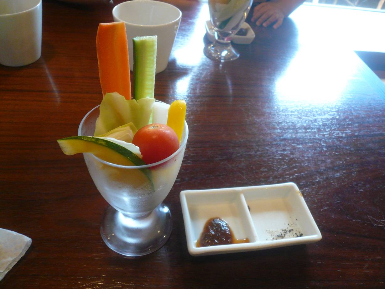 082-504-9444 ランチ 6種の野菜 1,200円。 魚定食 1,200円。 最初に野菜スティックが出てくる。 ポリポリ食べてる。 甘みがあったり癖があったり。 なかなか美味しい。 ネギ味噌が美味しいな。 その後20分くらいしてランチがやってきた。 ・・・量少なっ! これだけ? 僕は魚定食だった。 おかずは、ちょっと冷たいカレイの煮つけが意外と美味かった。 野菜はわりと普通かな? 美味しいけど何よりも。 6種の野菜の方も・・・。 少ない。 ダイエット用なのかな? ちょっと値段を考えるともう少し欲しいかな? 夜に行くとイメージは変わるのかも。 また行ってみないとね。 ご馳走様でした