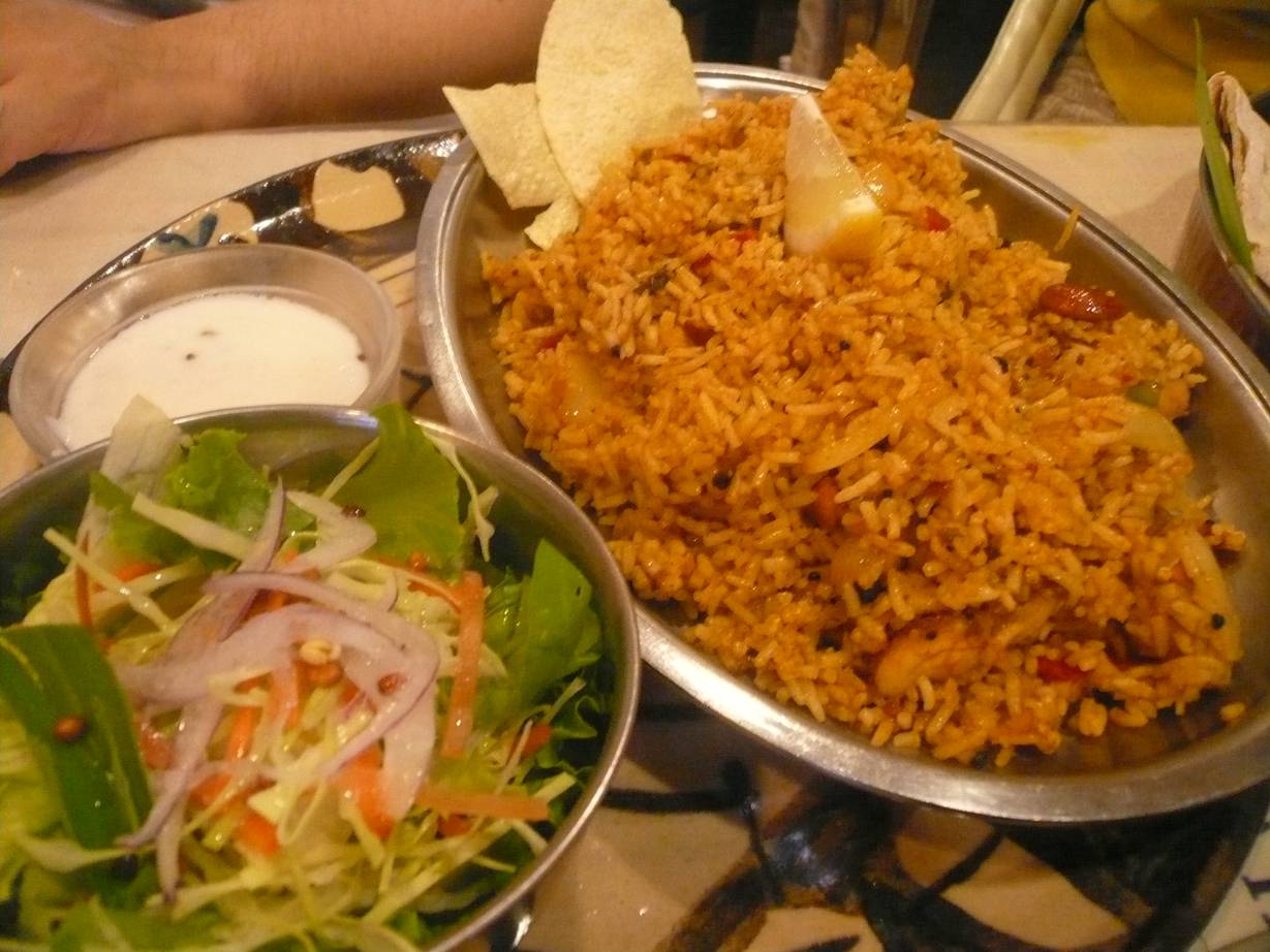 082-233-7410 ランチセット850円。 ケララランチセット1,200円。 ミールスランチセット1,000円。 話によれば、南インド料理はとても珍しいらしい。 ほとんどは北インド料理が広島には多いらしい。 何が違うの? って聞くとスープ料理が多いらしい。 それを手で食べるらしい。 どうやって食べるんだ? なんて聞いたらご飯に混ぜたりしながら食べるらしい。 色々勉強になります(笑)。 ランチセットはカレーが1種類 ケララランチセットはカレーが2種類とタンドリーチキンが選べる。 本日のカレーが3種類だったのでこんな選び方をしてみんなでシェア。 今回は友達夫婦と来ているのでそんなんもできる。 ありがたや~! ミールス何種類ものカレーがのったワンプレートランチ。 カレーはチキン・バターチキン・サンバル(野菜と豆のカレー)。 僕はサンバルが旨かったなぁ。 独特の風味はそれぞれのカレーに対してスパイスが違うのかもしれない。 風味が独特で、でも重くない美味しいカレー。 辛味は軽めでお願いしたが(インド好きな人がそうチョイスした)、まずまず辛かった。 しかし香りがどれも素晴らしいなぁ。 相方は甘みの奥に辛味があるバターチキンを気に入り。 友達夫婦はチキンカレーの風味を気に行っていた。 つまり。 どれも美味い! フライドライスセット1,400円。 海老のバナナの葉蒸し700円。 ついてくるデザート。 フライドライスセットは普通に頼むと1,200円。 でもその場合の米は日本の2分つき米。 しかし200円足すとインドの米にしてくれるらしい。 夜は普通にインド米らしい。 せっかくなのでインド米で。 まぁただのカレーチャーハンならこの値段は高いなぁ。 なんて思っていたら、これがまた旨いんですよ。 油が少し効いてるので強い味なんですが。 それ以上に入っている肉やら具材やらがスパイスが効いてるんですよね。 米にも違うスパイスが効いてるので。 いろんなスパイスが口の中で楽しめます。 中毒性も高い、素晴らしい料理。 美味かったなあ。 ちなみにこのフライドライス。 ヨーグルトを混ぜて食べるとまた旨いらしい。 僕も食べてみたらまろやかな酸味で面白い。 ちょっとびっくりだけど旨かったね。 その後海老の蒸しものを食べたけど、酸味が効いたスパイスで面白い。 でもね。 他のものよりインパクトは無かったかな。 まぁ、これはご愛嬌かな。 あとどれもサラダが付いてるけど。 苦味が効いた野菜がたっぷりあって美味しいし。 デザートのヨーグルトの酸味もよかったな。 また行きたいなぁ。 次は夜かな。 誰か一緒に行かない? ご馳走様でした!!