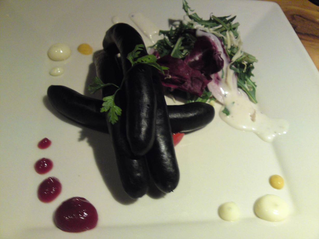 082-875-3633 実は以前から気になっていたんですよね。 こちらのお店。 ちょっと創作系らしいですがここでしか食べれないものが多いらしい。 まずは・・・。 ブラックデビル。 これは黒いソーセージ。 中身はイカスミで黒く染めたらしい。 味は・・・。 普通のソーセージでした(涙)。 でもイカスミには栄養が多いらしい。 身体に優しいソーセージ。 そう思えばしみじみ食べれるなぁ。 次は 「クロコダイルの串揚げ」 なんだか小さな二つの揚げもの。 食べてみるとぷりぷりした骨の周りの肉みたいなもの。 癖のないエイを硬くした感じ。 特別な美味さはない。 でも貴重なものを食べれたという満足感があるね。 軽く食べ呑みできるお店。 肩の力は抜けれる雰囲気はありがたい。 次はランチに行ってみようかな。 ご馳走様でした。