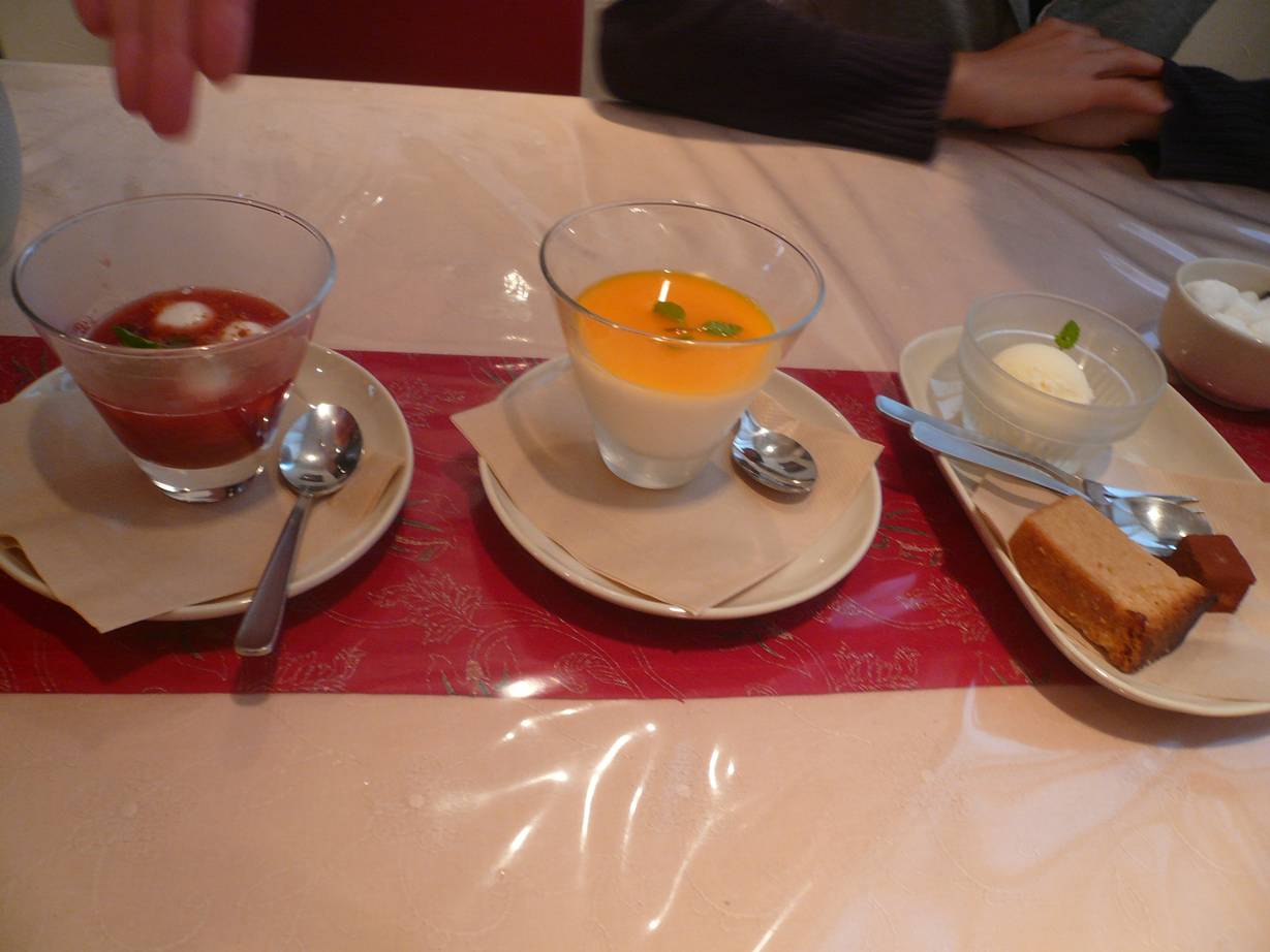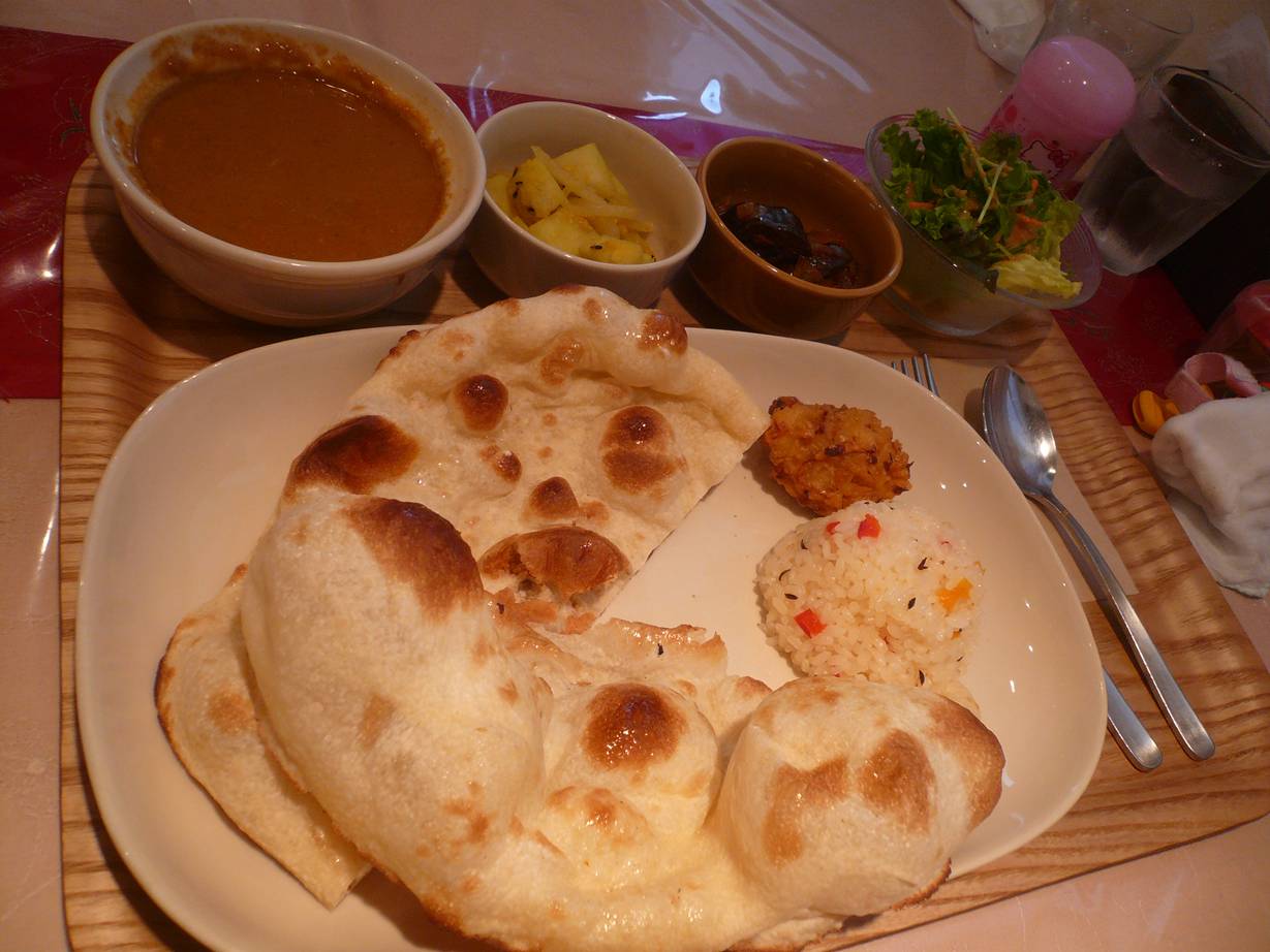 082-555-5119 ラーダヴィラスランチ 1,1,55円。 デザートドリンクセット 480円。 今日は友人夫婦とカレーを食べに。 いやぁ、ここのカレー。 僕の中にある「カレー」という概念を完全に崩してもらった。 ちなみにカレーは4種類。 ひよこ豆のカレー・チキンカレー・キーマカレー・シーフードカレー 。 このうち、チキンを省いた3種類をチョイス。 どのカレーを食べても全く辛くないのです。 スパイスが効いてるカレーだけど、辛さと言うものがどこかに行ってしまっている。 スパイスの香り素晴らしい「煮物」。 そんな感じ。 オイルもほとんど感じない不思議なカレー。 非常にあっさりしていて軽い感じ。 かわりにライスやナンは少しオイルを使っている。 いやぁ、これはいいね。 胃がすっきりしてきそうなカレー。 僕は好きだなぁ。 ちなみに別盛りでスパイスが付いてくる。 ハーブソルトと辛いスパイス(名前は忘れました)。 ハーブソルトはいろんなものに軽く一匙かけると、ハーブの爽やかな香りが広がる。 幸せ。 辛いスパイスは、ひと匙かけると。 ちょっと辛くなる。 でも優しい味が好きだったのであまりかけず。 どれも美味しかったなぁ。 この後、ドリンクとデザートが出てくる。 ドリンクはチャイとラッシー。 チャイを飲んで一言。 「これ・・・、番茶?」 そんな感じで驚いてしまう風味(笑)。 これを甘くして飲んだらまたいいですね。 でも砂糖無しでも僕は好きだ。 ラッシーはとっても濃厚。 市販の飲むヨーグルトよりも少し濃厚。 これは面白いなぁ。 デザートは3種類。 マンゴーの杏仁豆腐は普通ですが・・・。 イチゴの白玉は。 熱々。 面白い感覚だなぁ。 熱々の白玉団子。 そして熱々のイチゴジャム。 酸味の気持ち良さと香りの経ち方が上手だな。 でも最後のアイスとスポンジケーキ。 これ、生姜のアイスと生姜のスポンジ。 香りがもろに生姜。 少し後味がピリッとするのも面白い。 いい店だなぁ。 しみじみ。 夜もかなりいろんなメニューがあった。 これはまた行かなくては。 楽しみだ! 一緒に行ってくれた友達にもありがとう。 お店にもありがとう。 みんなありがとう。 そんな気分になれました♪ ご馳走様でした!!