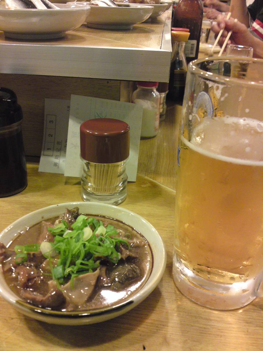 06-6361-4881 こちらも10年ぶりくらいかな? ここはよく行ってたな。 いつも頼むものは決まっていた。 ・牛ホルモン煮込み ・レバーバター この2品で終了していた。 この2品がとてもジャンクで特別感が無いのに美味いんだよね。 空気と味が一致してるのかな。 そんな感じ。 しみじみと酔っ払いが喜ぶ味だなぁ。 味が少し濃いけど醤油辛いのではなく。 ただ「味が強い」って感じ。 今回はレバーバターは食べれなかったけど嬉しかった。 ちなみにビール350円に牛ホルモン煮込みが400円。 750円。 うん、安い! ちなみにこちらのお店。 朝7時から営業。 朝酒したい人、行ってみて♪ あ~、酔っぱらったな! ご馳走様でした!