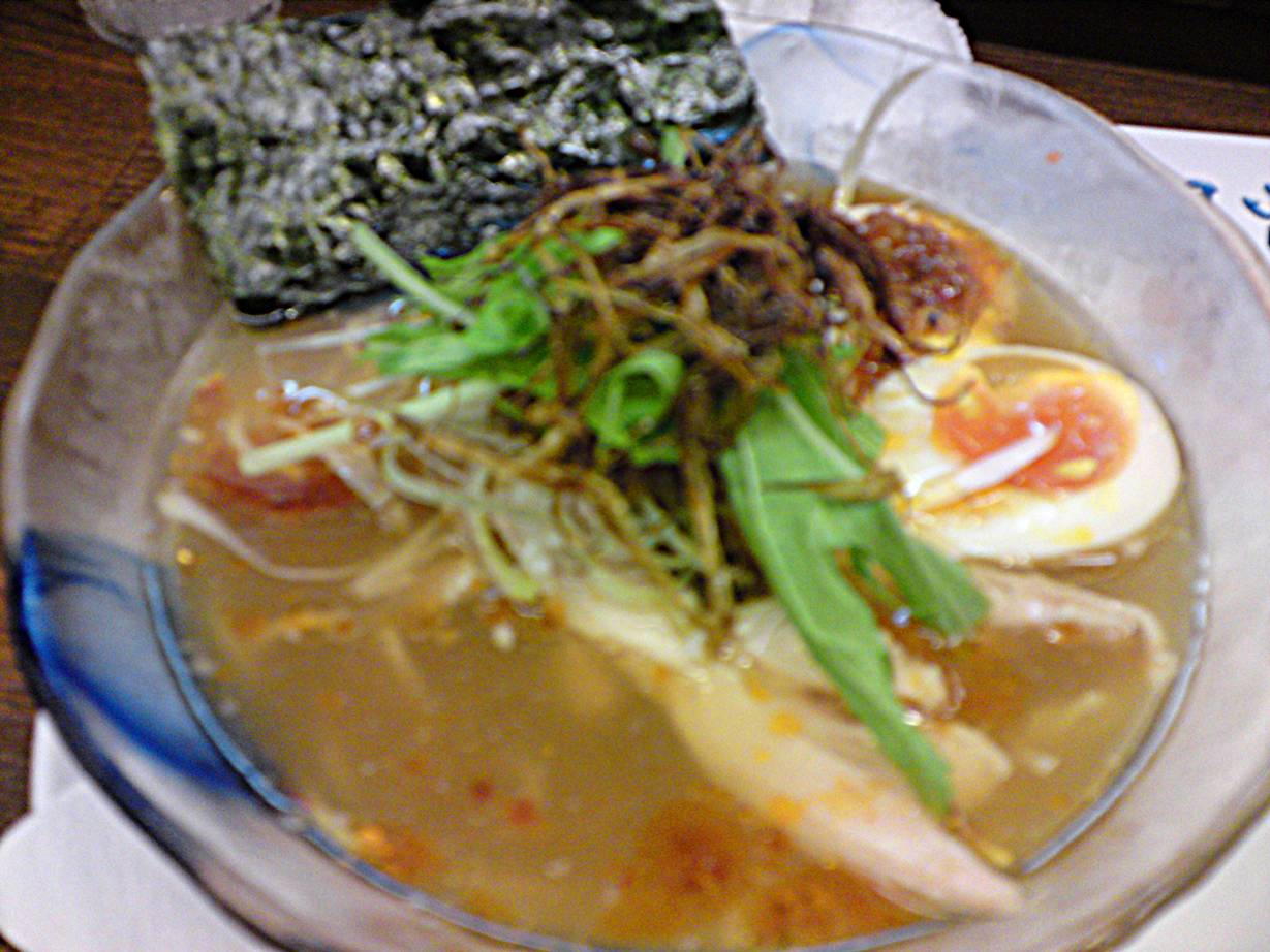 082-261-1330 暑かったので冷たい麺を注文。 マグロ風味の冷やしラーメン750円。 美味しかった。 お腹はそんなに空いてなかったのにすいすい入った。 麺が少しスープに合わない気もしたが酔っていたので定かではない。 ってより今になって考えると。 ほとんど覚えていない(苦笑)。 ついでに写真はピンぼけすぎ・・・。 申し訳ございませんでした(汗)。 ご馳走様でした! PR