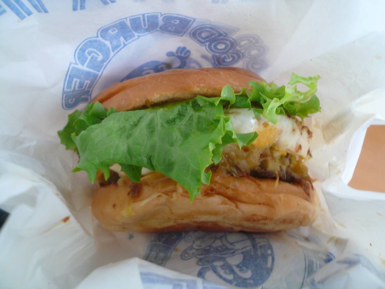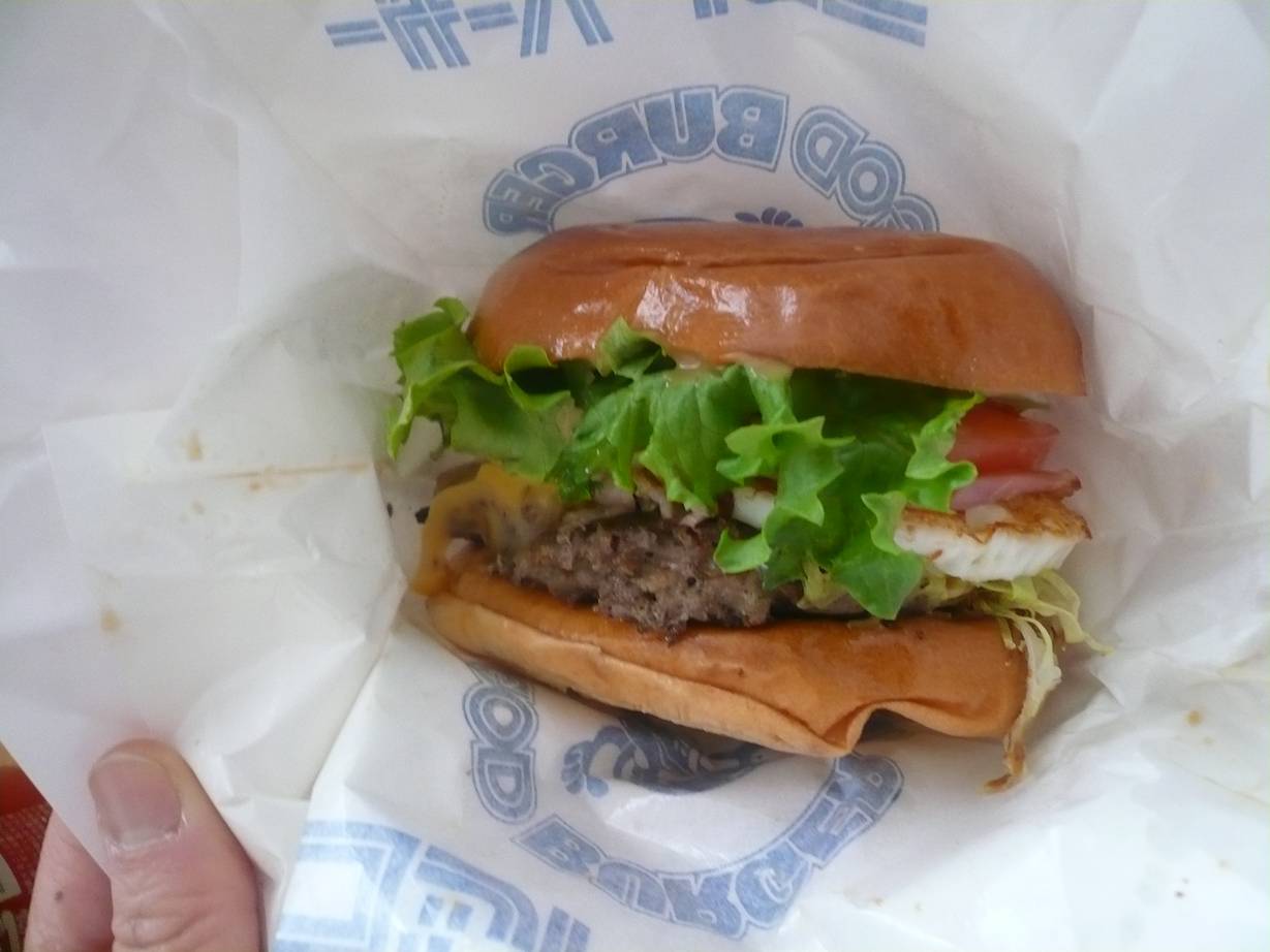 広島市西区横川町3-10-16 082-232-2608 今日はリニューアル後初めて行くこのお店へ。 あの昔懐かしいお店の雰囲気から一転して、かなりお洒落な外観のお店に変わっています。 ちょっと近いのですぐに行ける、なんて思っていたらここまで行けませんでした。 入ってみると思った以上に小さなお店に変わってました。 席は机が3つ。 かなり減ったね。 料理もポテトなサブメニューが無くなってハンガーバー系だけ。 思いきったメニューだなぁ。 デリシャスバーガー630円。 ハンバーグがしっかりしていてなんだか見た目で旨そう。 って少し形は崩れてしまったのは持ち帰りだから。 食べてみるとレタスがすーと抜けてしまう。 ううむ、食べるのが難しい。 ハンバーグがしっかり香りがあって美味しいなぁ。 ソースがパンにしみ込んで旨いしこりゃはまるな。 美味しいなぁ。 でも食べていくうちに崩れていく。 食べにくさは辛いです。 美味しいだけにもったいない。 (ハンバーガーってそんな食べ物だと言われたらそれまでですが) ロイヤルゴッド780円。 デリシャスバーガーにトマトやチーズが入って大きくなった感じ。 トマトが入るとすっきりするし美味しいのだけどね。 汁が垂れる・・・。 さらに食べるのが難しい。 こりゃまいったなぁ。 美味しいのに。 ハンバーグがとても旨いしなんだか懐かしいソースも美味しい。 ゆっくり食べたらまた違うのかな。 次は少し小さなハンバーガーを食べて軽く食べたいな。 チーズバーガーとかチョイスしようか。 ご馳走様でした!