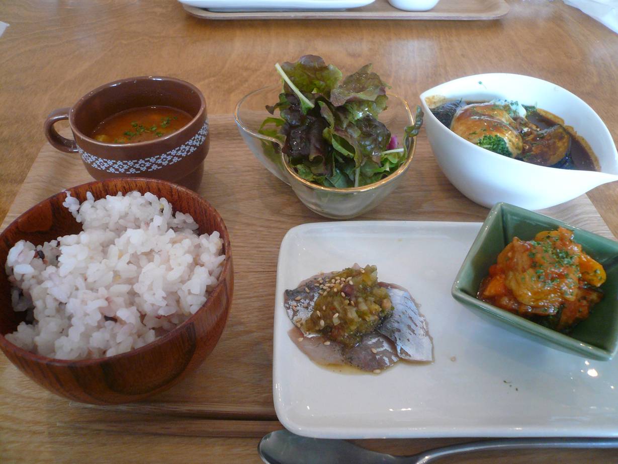 広島市安佐南区山本3-10-7 082-962-1243 今日はママ会のような感じのものに参加しました。 ってことでこちらのカフェへ。 子供連れでも行きやすいカフェっってことですがどんな感じだろう? って言ってみて納得。 席は子供用の席がたくさん用意してもらっているし、その椅子は各年代別にある。 そして託児ルームみたいなところもあっておもちゃもあり子供は喜べる。 こりゃいいね。 さて料理はどんな感じだろう? ランチは1,480円のセット 前菜系を2種、メインが1品選んでスープとご飯orパン、サラダ、デザートかな。 僕は前菜系では鯵のカルパッチョ・南仏風煮込。 メインはスープカレー。 相方はヒジキの白和えと南瓜のサラダ・メインはハンバーグ。 まず思ったこと。 ・・・これだけ? 前菜とか言ってたのでどんなんかな、って思ったらワンプレートランチでした。 ほとんど量は出てこない。 こりゃやられたな。 って思ってたらご飯・パンはお代わり自由。 ご飯は穀物米みたいだ。 どれも味が強くちょっと驚いたが悪くはない。 ってより女性って意外と強い味が好きだったりするもんね。 デザートも5種類くらいから選べるので僕はカップパフェで相方は豆腐のケーキを。 意外と普通の甘みがしっかりあって「甘さ控えめ」ってのではない。 女性をターゲットにしてるんだろうね。 僕はちょっと高いな、って思ったけど子供への環境や施設を含めた値段と思えば悪くないかも。 次は夜かな。 ご馳走様でした。