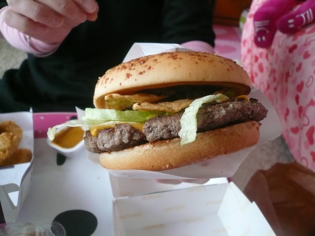広島市安佐南区長束1-3-21 082-237-6299 今日はちょっとCMで人気のメニューを食べにマクドナルドへ。 ってより相方が買ってきてくれました。 ふーん、アメリカンメニューが人気らしいね。 って言うと、並んで買ったとのこと。 凄いな、その人気は。 やはり美味しいのだろうか? 楽しみだ。 マイアミバーガー390円。 この値段はクーポン価格らしい。 なんだかタコスの皮見たいのが入っている。 これが食べると面白い食感になる。 もう少し歯ごたえがあってもいい気がするがこれは持ち帰りにしたからしなっとしたのかな? ソースはカレー風味のようなチリソース。 とってもジャンクな味。 レタスがもう少したっぷりなら嬉しいな。 なるほど、面白い味でした。 次は、どんなハンバーガーが出るんだろう? ご馳走様でした。