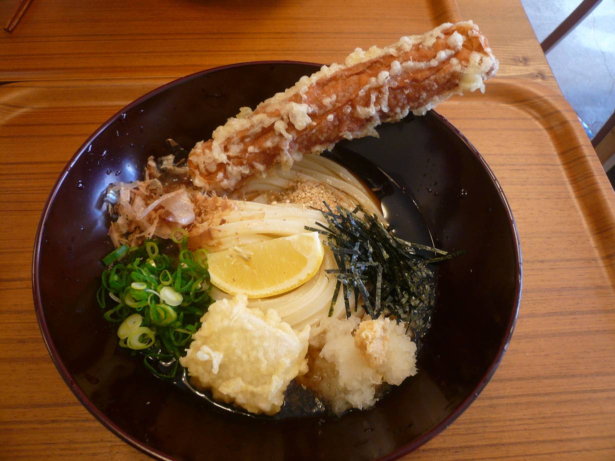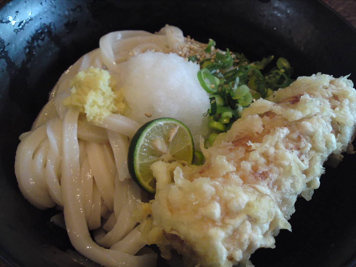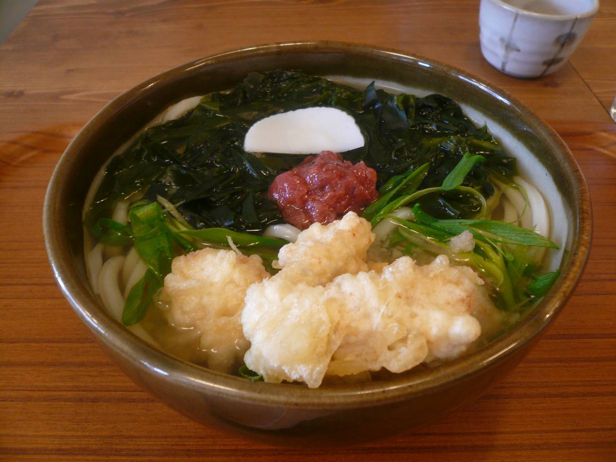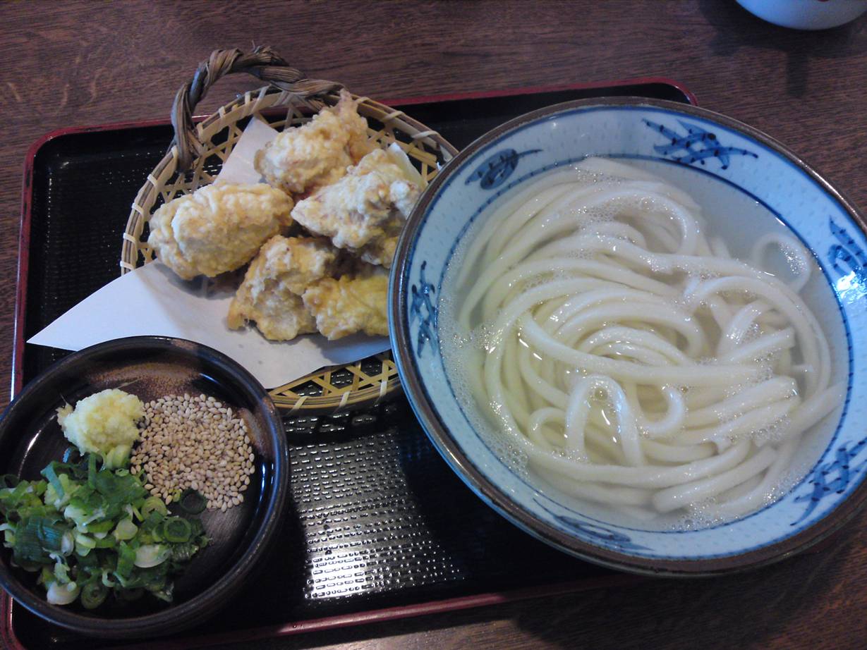 広島市西区井口明神2-1-19 082-276-1388 無事広島に帰ってきました。 今年もよろしくお願いいたします(随分更新は遅れていますが)。 さて広島に帰ってきて何を食べようかと。 例年お好み焼きとか広島らしいものを食べてきたけど、今年はうどんを。 当初、『わだち草』さんに行こうと思ったのですがまだお休み。 ではどこに行こうと言うことで評判のいいこちらのお店へ。 実は有名なお店らしく以前は「凡蔵」さんという名前でやられていたらしい。 今は2代目の人がやっているそうで、讃岐うどんをメインに頑張っているらしい。 さて僕らは美味しいうどんを頂きましょう。 ちく天おろし醤油うどん(冷)。 ごめんなさい、値段は忘れました。 たぶん700円はいかなかったかな。 せっかくなので揚げたての竹輪を食べてみないと、って思って食べようとすると、初めての形に驚く。 僕の知ってるちく天ってだいたい半分に切って揚げてある。 これは丸のまま。 どんなのかな、って食べてみるとカリッとした衣に竹輪の風味が重なって旨い。 こりゃ美味いなぁ、って思い少し醤油をかけて食べるとさらに旨い。 これはいいな。 うどんはかなり長くずっしりしたうどんでホントに讃岐うどんだね。 美味しいなぁ。 しっかり腰もあってむちっとして美味しい。 こりゃいいなぁ。 かしわ天湯だめうどん。 これもたっぷりで700円しなかったと思う。 かしわ天は5個ほどコロコロと。 大きなかしわで立派だな。 味はちょっと醤油の味が強いかな。 ってより味が強くてちょっと驚き。 でも美味しい。 鶏はジューシーですね。 かしわなのでもう少し脂が無くてもいいかな。 うどんは温かいとまたむっちりしていい風味が出て旨いな。 こりゃどちらを食べるか悩むなぁ。 さらに美味しそうなものを食べたいと思い親子丼840円。 綺麗な親子丼ですね。 とろんとした卵に鶏肉。 しっかりした鶏肉で旨いね。 ってよりこの丼、絶品だわ。 味の甘辛さもいいし、鶏の硬さもいいし美味しいなぁ。 これは次回も食べたいな。 ってよりうどんとセットでミニ丼が欲しくなったな。 いやぁ旨かったなぁ。 少し遠いけど、赤ちゃん本舗にいくついてに行きたいなぁ。 ここも必ず行くぞ! ご馳走様でした!!