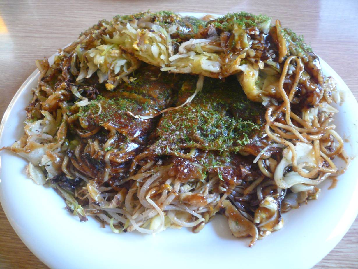 安芸郡府中町浜田3-7-11 082-284-7818 今日はお好み焼きを食べたいと言うことでちょっと遠出をしてこちらのお店へ。 ってよりソレイユに行くときにあったお店なんだが。 お店はちょっと古めかしい感じで鉄板と座敷がある。 子供がいる僕らは座敷へ。 ここでは皿で食べることになる。 お店は若いご主人さんが一人でやっておられた。 凄い緊張感で誰もしゃべらない。 ・・・なんだか凄いな(苦笑)。 肉玉ソバ550円。 凄い量のキャベツが目立つ。 皿には乗りきれてないのでこんな見た目になっている。 凄いなぁ。 ちなみにキャベツは注文のたびに切ってくれている。 ちょっと嬉しい。 味はソースも濃いのだけどそれ以上に味付けが濃く感じた。 塩も少し強めかな。 後は魚粉の味も強かった。 ちょっと濃いなぁ、って思いながらもやしやキャベツの多さでt場得れるお好み焼き。 そうそう、卵も大きな感じがする。 この値段でボリュームたっぷりなのは嬉しいなぁ。 次は隣の人が食べてた焼きそばを食べてみたいな。 美味しそうだったし。 ご馳走様でした。