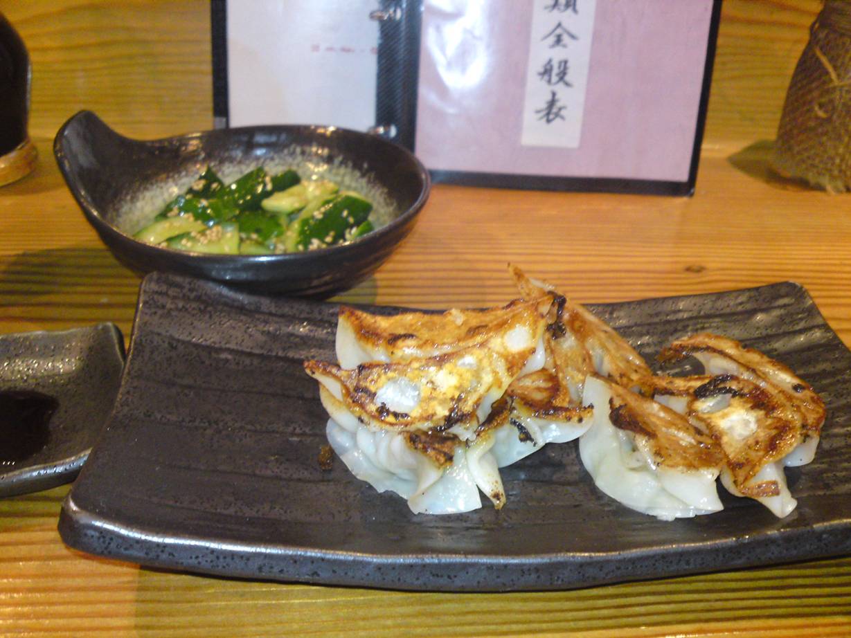 広島市中区新天地1-27 082-247-1770 今日は呑みに行った後の〆でやってきた餃子屋さん。 今は餃子一皿にお酒が一杯ついてくるというサービスが行われている。 なんて太っ腹な企画だ(笑)。 ビールでも、焼酎でも、サワー系でもOKみたい。 ありがたいねぇ。 ってことで焼酎とともに頼んでみました。 餃子10個とキュウリのおつまみ850円。 餃子は小さい餃子がころりと乗っているね。 餃子同志はあまりくっついてないのはありがたい。 食べてみたらあっさりしてるね。 でもお酒をかなり呑んでたので詳しいことは何とも言えない。 パクパク口に入る餃子だった。 夜からの営業だけあってそんなにこってりしてたら辛いもんね。 美味しかったなぁ。 お酒つきサービスの間にまた行きたいな。 ご馳走様でした。