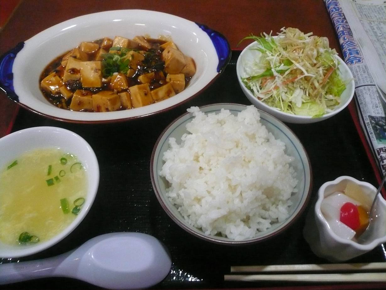 広島市西区楠木町1-11-17 082-232-1913 今日は会社で会議の日。 でも後輩が見事にお弁当の数を間違えて注文し僕だけ無し(涙)。 ってことで近くですぐ食べれるこちらのお店へ。 ちょっと久々に来たのだけど相変わらずスタッフチャイナ服がなんだか可愛い(笑)。 これだけでなんだか和むね。 陳麻婆豆腐定食680円。 やっぱり辛くない麻婆豆腐。 醤油の味が少し強いのでご飯に合う若干和風にも思う麻婆豆腐。 この辺りはあまり印象は変わらないなぁ。 でも・・・。 少しボリューム落ちた? まぁ腹ちぎれる! って程だった時から比べてだけど。 適量になったってことかな? 次はラーメン炒飯セットも食べてみたいな。 ご馳走様でした。