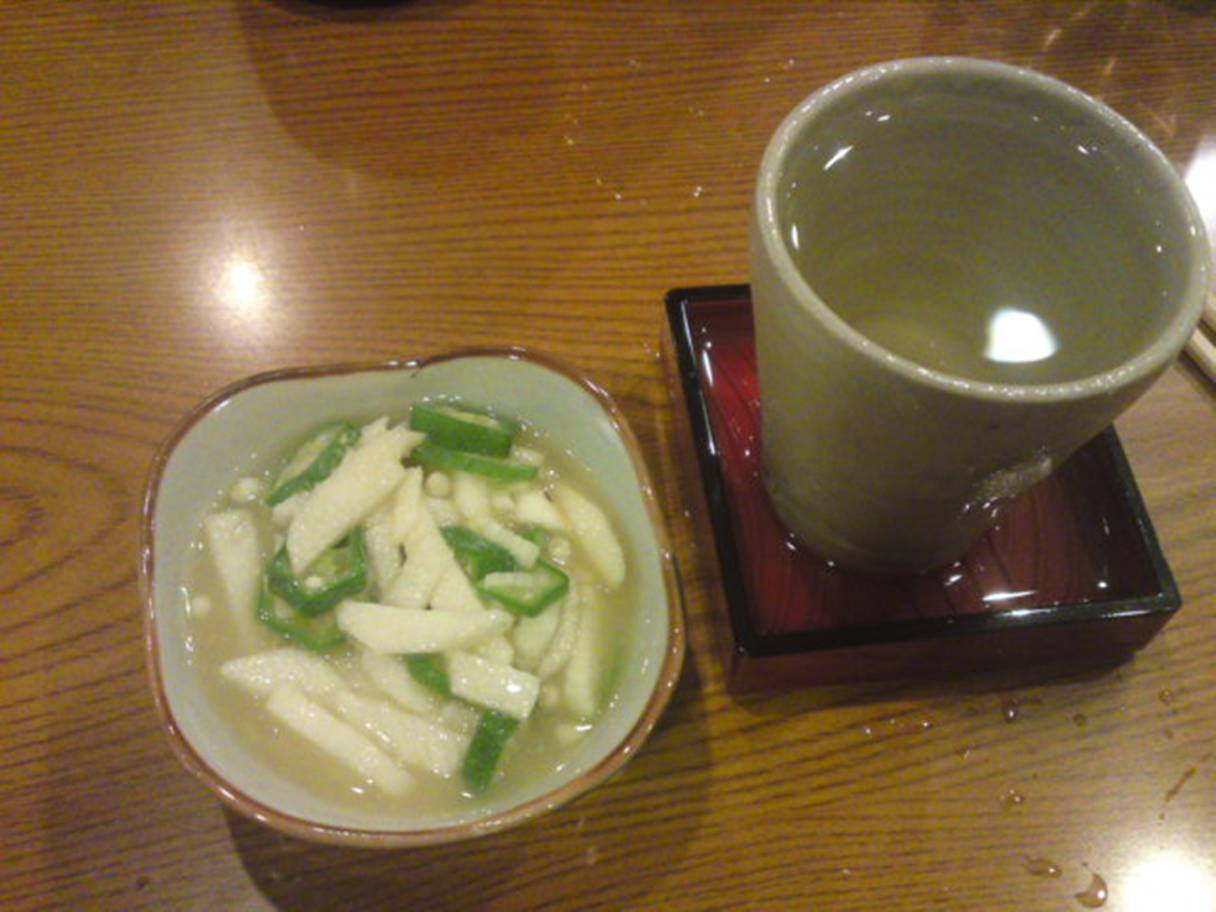 奈良市東向28 奈良近鉄ビルB1 0742-26-2625 今日は奈良の立ち呑み屋さんへ。 近鉄奈良駅の中にあるお店。 「豊澤酒造」がやってるアンテナショップ。 なので日本酒は250円から。 食べ物は250円~350円でやってくれる。 それも奈良らしい美味しい野菜などがメインになっている。 ちょっと楽しみだな。 椎茸の佃煮250円。 これは小鉢に見えるけどこれが結構たくさんついでくれている。 椎茸の佃煮は少し甘めで醤油の味も強い。 昆布もたっぷり入っていて酒呑みにはいいね。 ってよりたっぷり入ってるから一杯の酒でも残ってしまった。 嬉しいねぇ。 おぼろ豆腐。 どこそこのって書いてあった気がしたけど忘れちゃった(苦笑)。 これも結構量があって250円。 まぁ少し香りがあるかな、って感じの豆腐。 でも豆腐って酒呑むときによく合うなぁ。 横のおっさんは塩で食べていた。 そんな食べ方あるの? いいなぁ。 山芋とオクラのわさび和え250円。 これもなみなみと注いでくれる。 山葵の香りが軽くピリッとしてこれまた酒呑みにはたまらないではないか。 しかもたっぷり入ってるからさらさらと呑むようにも食べれる(笑)。 山芋って身体にもいいしね(たぶん)。 って奈良らしい料理だったしいいね。 野菜ばっかりってのが良かった。 お話しても面白いご主人さんとスタッフさんがいい感じだった。 「野菜ばかりでいいですね」 「ピリ辛ソーセージでも出そうか(笑)?」 こんな感じ(笑)。 また行きたいな。 ご馳走様でした!