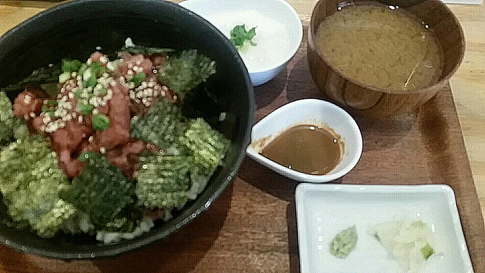 福岡市博多区古門戸町5-5 092-261-2233 ちょっとご無沙汰してましたこちらへ。 ランチタイムにやってきました。 でもこの日は時間も遅めとはいえ、客は僕だけ。 いい店だと思うのになぁ。 なかなか経営ってのは難しいものですね。 さて今回もこちらをチョイスしました。 とろろマグロ丼750円。 ちょっとピンボケですみません。 とろろはセパレートされていて、自分で好きなタイミングで乗せられる。 そしてマグロは漬けっぽくなっていた。 ちょっと筋っぽいマグロにゴマタレ。 濃い目の味付けになるけど、ご飯のおかずになるよね。 ってより何より。 お店に勢いを感じないなぁ。 もう一分張りしてほしいな。 僕は好きなタイプのお店だから。 ご馳走様でした。 |