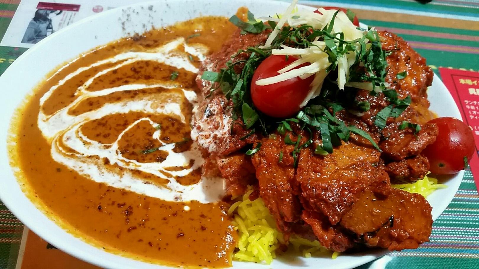 福岡市博多区中呉服町2-12 092-263-3953 今日は以前から知っていたのにいけていなかったお店へ。 なんとなく避けていたというか、どうなんだろうなぁ? なんて思える雰囲気のお店だったのですが。 身体がカレーを欲してしまい、入っていきました(笑)。 お店はインドの方かな? 調理の人もスタッフも海外の方がメインでした。 メニューを見るといろんな面白そうなものがあり、旨かったらまた行くだろうな。 なんて思えるものも多かったです。 まず僕はこちらをチョイス。 なすびトポークのカレーライスランチ800円。 これは誤記ではなく本当にこう書いてあった(笑)。 かなりたっぷりの味付けされた肉が乗っており、ボリューム満点! ってよりライスもソースもたっぷりで驚かされます。 カレーは辛さを強くしてもらったのですが、少し汗が出てくるくらい。 スパイスもしっかり効いていて香りもよくいいですね。 ちょっと重たさも感じるのは歳のせいか、油のせいかはわかりませんが満腹感はすごかった。 肉はしっかり味付けされており、単体でも旨かった。 ソースにかけて食べたらちょっと複雑というか。 味わいに混乱してしまう感じもあったね(苦笑)。 ってより、ナスはどこに行った? でも旨かったなぁ。 次はビニヤリも食べてみたいな。 楽しみなお店だなぁ。 ご馳走様でした!