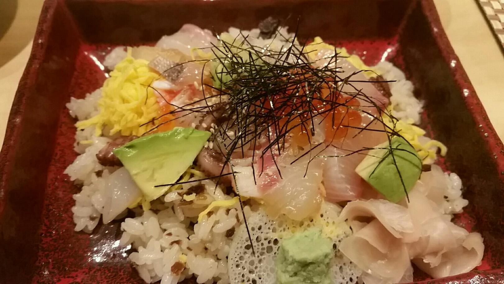 福岡市博多区店屋町3-3 092-282-6900 今日は今年の6月くらいにできたお店。 とても美味しいと評判になっていたのですが、ライン地もしているということを知ってやってきました。 お店はカウンターが綺麗で居心地がいい。 ちょっと高級店かな、なんて思うのですがたまに行くならこういった居心地のいいお店がいいな。 ここは日替わりで寿司系のランチがやっているみたいで、7月も日替わりのメニューがある。 今日はこちらでした。 サービスチラシ999円。 まず最初にきんぴらが出てきた。 これがなかなか美味くてシャキシャキしていて美味しかった。 ここから茶碗蒸しが出てくる。 小さな茶碗蒸しですが、里芋とオクラ。 出汁が強めに効いていてこれが凄く美味い。 写真を撮り忘れるくらいうまい(笑)。 さてチラシ寿司ですが、こちらは海鮮の五目チラシかな。 刺身が少しずつ仕事をされていたのとシャリが美味かった。 でも少し味は濃いめ。 そしてアボカドがちょっと抜けかな。 そういったところも面白いお店。 なかなか美味かった。 ここはこれから注目だな。 ご馳走様でした!!