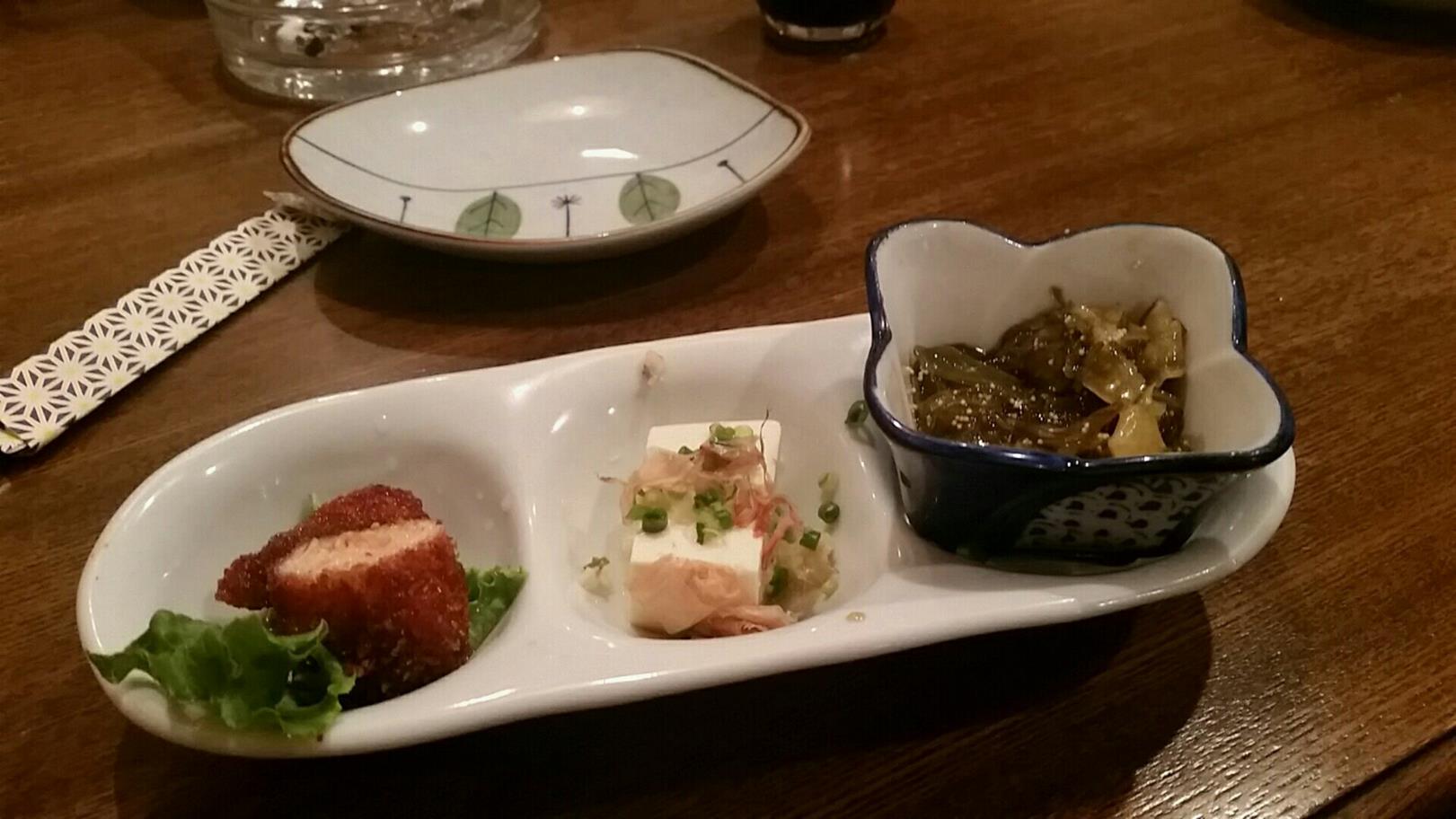 福岡市博多区奈良屋町9-18 092-271-2587 今日はたまに行くこちらを紹介。 ここはランチもたまに行くのですが、夜もいいんですよね。 いつもたくさんのお客さんが来られています。 常連さんもついていていいですねぇ。 さてこちらで食べると言えばこちらです 寄り道セット1,000円。 小鉢が3品。 だけでなく、これにビールか焼酎が2杯つく。 2杯ってのが嬉しいなあ。 この日の小鉢は海老カツ、冷奴、モズク。 特別感はないけどこのセットはお得だなぁ。 居心地もいいし、お店の人も楽しい。 いいお店です。 色んなメニューを食べるのもいいし、寄り道だけで終わっても嫌がられない。 ありがたや。 ご馳走様でした!