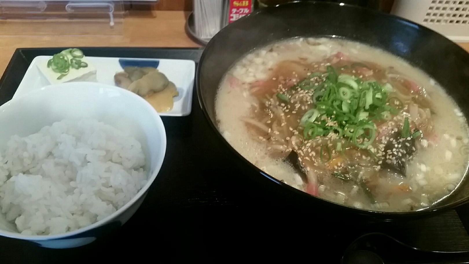 福岡市博多区古門戸町5-5 今日はこのお店へ。 最近いつの間にかできていたお店。 以前は韓国料理移転だったし、そこも行ってみたかったのですが。 やっぱり後悔しても、行きたいと思った時に行かないとね。 さてこちらの店はとろみの強い料理が揃っている。 ランチも日替わりでとろみのあるものがついてくる。 さてこの日はこちらのものをチョイスしました。 豚骨餡かけラーメンセット700円。 餡かけが乗ったラーメンだ。 ・・・ってよりちゃんぽん的だな(笑)。 それに豆腐とザーサイ、ご飯がついてくる。 豚骨ラーメンはちょっと見た目よりジャンク過ぎる感じがあるけど。 そこに柔らかいとろみの餡かけが乗っていて面白いね。 とろみが柔らかいのがいいなぁ、 野菜がというかもやし系がたっぷり入った野菜炒めはいいですね。 ちょっと終盤は底にたまってしまって食べにくいけどね。 さてご飯もついてお腹いっぱいになったし良かったなぁ。 次は夜も行ってみたいな。 きっとこれから様子も変わるし、夜も変わるのだろうな。 ご馳走様でした。