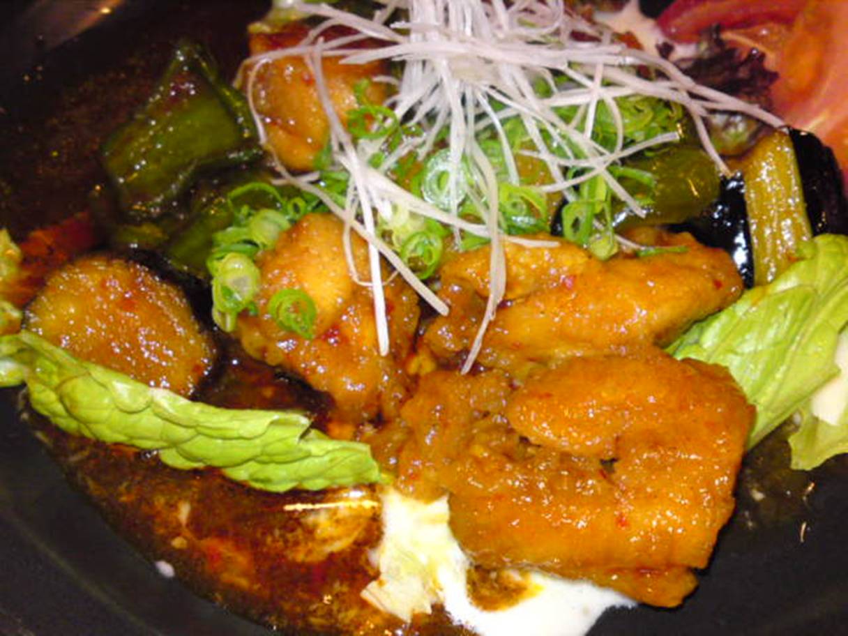 広島市中区十日市町1-4-20 082-503-7666 今日は仕事のメンバーと歓迎会の為に行ってみました。 入るとイタリアンのようなメニューもあったり、中華料理のような炒めもののメニューがあったり居酒屋のようなものもあったり。 面白い店だし、個性的だけどなんだか怪しさもいっぱいだなぁ(笑)。 スタッフも若い人だしなんだか外すかも、って気持ちがする。 どうだろう・・・? 刺身盛り3種。 刺身を一人一人それぞれ分けてもらって出してもらえる。 一人一人少しずつ刺身の内容が違う。 丁寧な仕事だなぁ。 自分の皿にはヒラメ・ヨコワマグロ・タコだったっけ? タコがとても味が濃く、香りがいいのが印象的。 こりゃ、いい店かもなんて思ったりして。 他の人も満足されていた。 よかったよかった。 ナスのピリ辛炒め。 これも集団で食べるのはいいメニュー。 なかなか唐辛子辛い味付けでビールが進む。 肉もしっかり味付けされて美味しいね。 野菜もたっぷりとれるし面白いなぁ。 この後パスタや、出汁茶漬け(これは旨かった)を食べたっけ。 どれも丁寧なお仕事でよかったです。 ほんとにいい店。 次はゆっくり一人呑みしたいな。 ご馳走様でした!