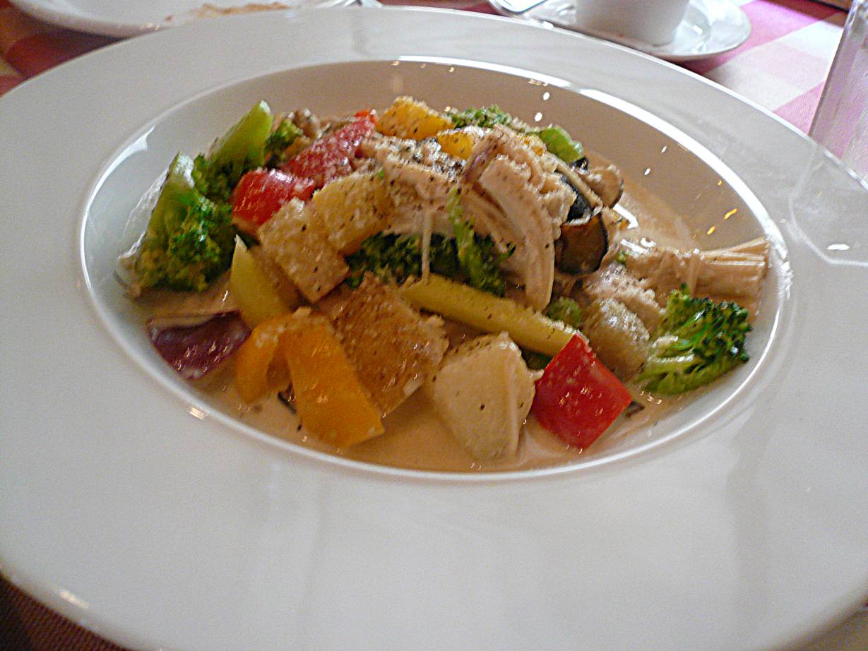 広島市安佐南区西原5-19-44 082-874-8887 今日は最近知り合ったお若い御夫婦とディナー。 ってことで軽く食べれそうでゆっくりできるこちらへ。 あとフリーペーパーで安いクーポンがあったので。 入ると意外と広い店内。 スタッフの人たちは笑顔で出迎えてくれるし、あとあともそうだが素早い対応で気づいてくれてた。 ありがたい。 なかなかチェーン店としてきっちりしてるなぁ。 今回はグラッツェパーティセットをチョイス。 2,500円のコースだけど、クーポンで1,980円でした。 サラダ。 生ハムが乗っている。 量は4人分として考えたら少し少なめかな。 ドレッシングは軽めで食べやすい。 特別感はないけど最初と思えばありがたいと思います。 前菜の盛り合わせ。 菜の花のアンチョビなんてビールが進むではないか。 クラッカーに乗ったチーズにはサーモン。 ちょっと塩っぱめでこれもなかなか面白い。 揚げたパンの中にカマンベールチーズや野菜のトマトソース、卵とジャガイモのを混ぜて焼いたものなんてあったっけ。 なかなか量もあって嬉しいですね。 ピザ2種類。 とっても大きなピザとなった。 4人分だったからかな? それでも立派な大きさだ。 クリームソースのような風味のピザと、ミートソースのピザ。 小さなエビがたくさん載っているクリームソース系は食べやすい風味。 ミートソースはとってもこってり。 生地は少し厚めでザグザグした歯ごたえ。 こういったピザはお腹にたまるしありがたいね。 チキンと野菜のシチュー。 チキンごろごろ。 大きな野菜もごろごろ。 思った以上に重くないミルク仕立てがいいね。 あとコショウが結構効いてるのもいいね。 なんだかアクセントになって面白い。 お酒を呑んでたからかもしれないけどこのコショウがさらっとした感じを上手くボカしてくれていました。 蟹のトマトソースパスタ。 蟹の味はあまり強くないし香りも弱目。 トマトソースの強さで食べる感じかな? ちなみに具の蟹も殻が多くあまり身がなかったっけ。 パスタ自身は平たいむちっとしたパスタ。 絡みがいいので美味しいね。 きのことベーコンの和風パスタ。 これもパスタはむちっとして平たいパスタですね。 よく似ている、っていうか同じやつかな? きのこたっぷりの醤油味パスタがいいですね。 海苔の香りが立って面白い。 これもパクパク食べれますね。 ロールケーキとパンナコッタ。 ロールケーキは一人ずつ違うものが用意されていた。 黒糖やきなこ、カフェラテの味がいいですね。 パンナコッタは柔らかいミルクプリンみたいな感じ。 特別な食材とかはないけどこれで一人1,980円ならありがたいと思う。 量もたっぷりだったし。 次はランチに使いたいな。 ご馳走様でした!