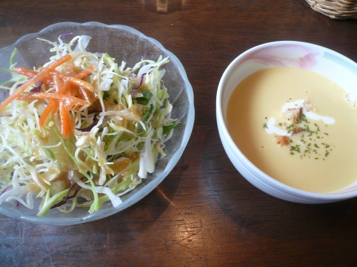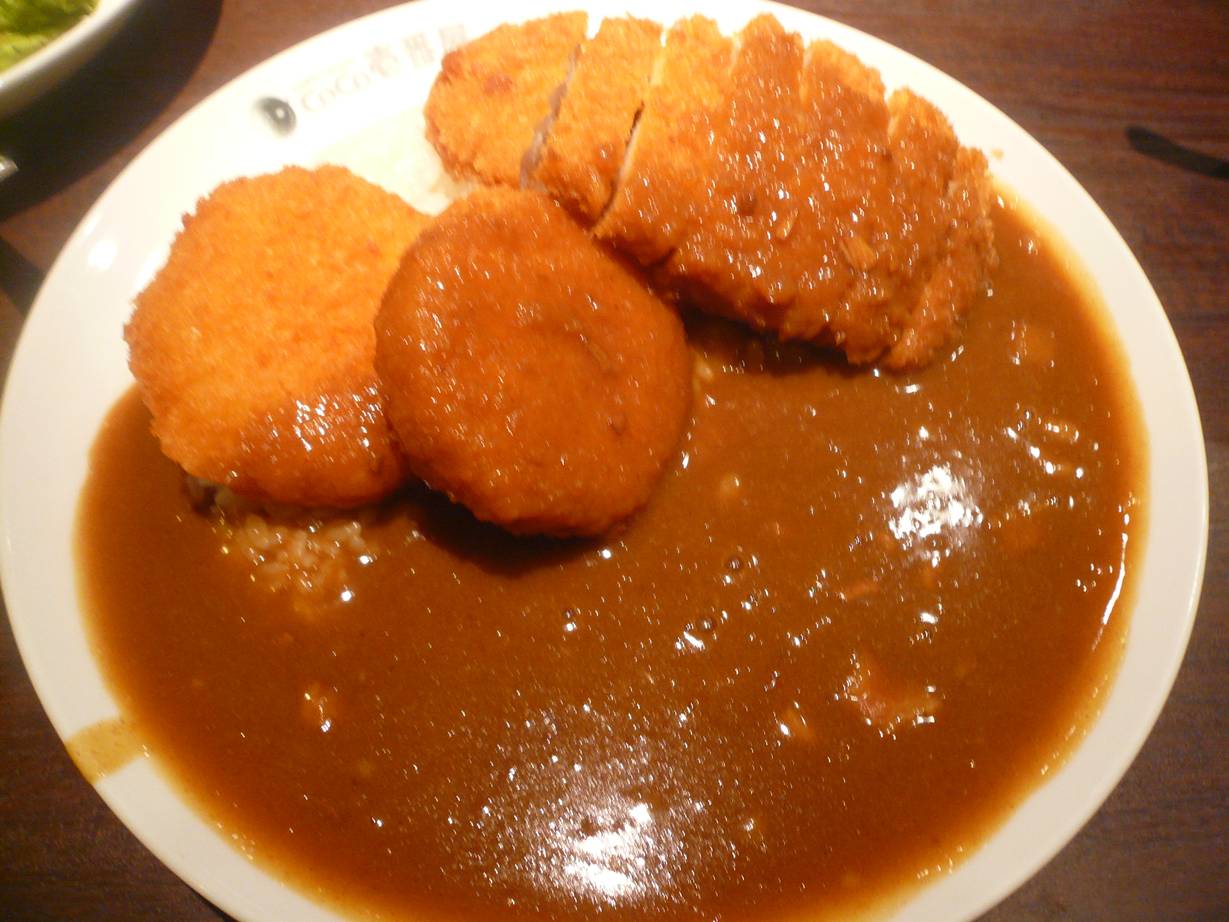 広島市安佐南区安東1-3-27 082-872-9032 今日は映画帰りに小腹がすいてこちらのお店へ。 カレーでも食べながら映画を語ろうかと。 カレーなら食べやすいし気楽に入れる雰囲気もあるからね。 今日は相方もいるので(初めてらしい)トッピングをつけながら食べてみるか。 卵サラダ。 うん、卵が乗ったサラダです。 特別なものではない。 ドレッシングはノンオイルやゴマなど。 これも特別さはないね。 カツカレー+カニコロッケ。 これ、まさかの揚げものダブル(苦笑)。 カレーは相変わらずかな。 特別に旨さもなく少し重さもある気がする。 カツは揚げたてだし、コロッケも揚げたて。 カツは薄めで肉の香りもしないけどしっとりしていてカレーソースを吸うのがいいね。 コロッケはこれ単品がいいなぁ。 あまりクリームと加わると重さがアップしているね。 ハンバーグカレー+チーズ。 ハンバーグの独特の臭みというか風味がある。 何とも言えないのですがハンバーグのあまり好まない理由がそこなんです。 チーズはカレーには合うけど少しやはり重い。 ・・・もしかして歳か!? 次は変化球なカレーも食べたいなぁ。 ご馳走様でした。