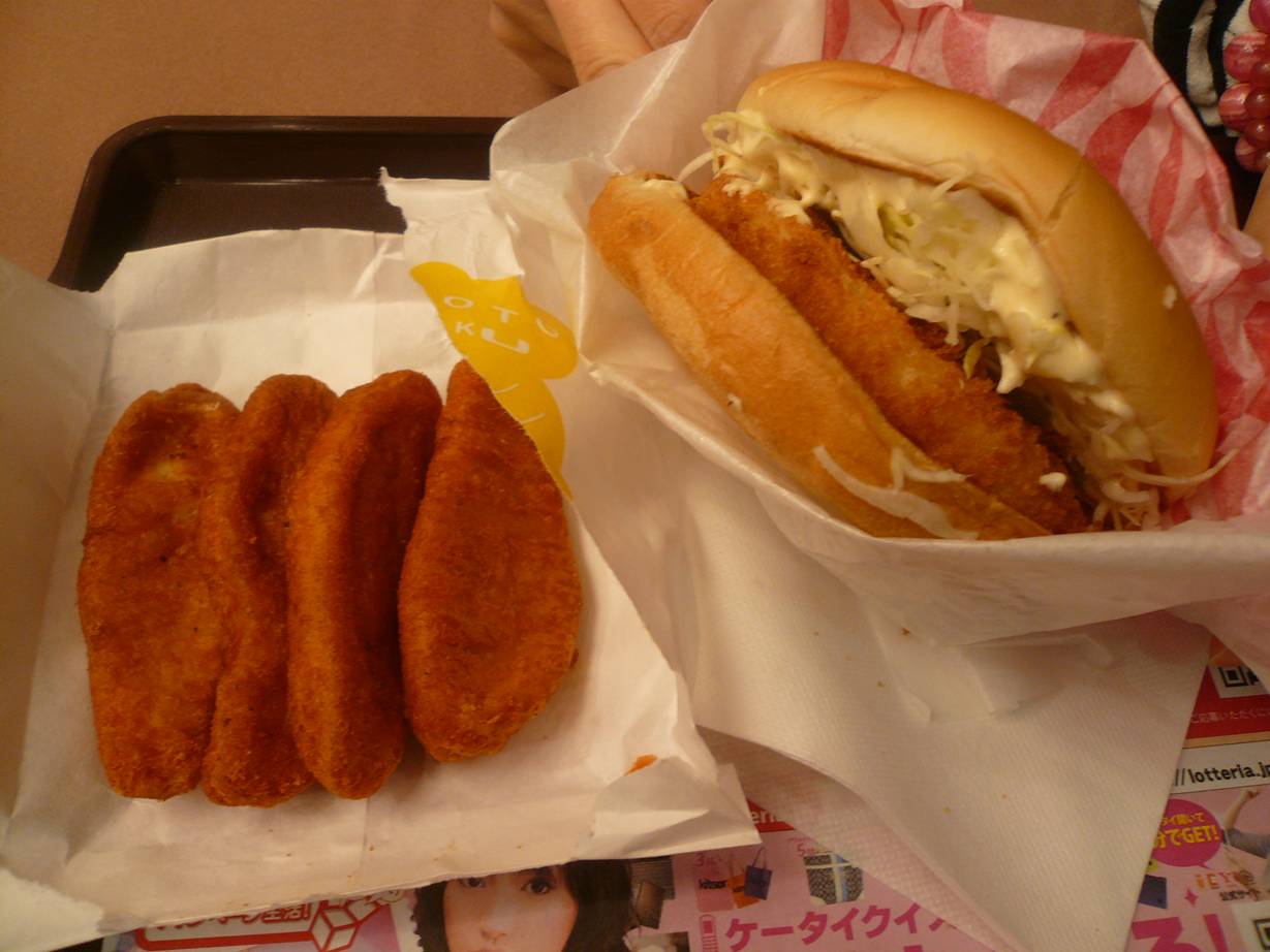 広島市西区草津新町2-26-1アルパーク1F 今日はこちらで軽くランチ。 エビバーガーというメニューが人気と聞いてた。 どんなんだろう? ちょっと楽しみなんだか、あまりロッテリアさんって行って無かったなぁ。 エビバーガー290円+からあげっと100円。 安いねぇ。 エビバーガーはエビのすり身と小エビが結構入ってた。 タルタルソースがたっぷり乗っててこれを食べる感じかな。 面白いけどそんなに特別感はあるのかなぁ? からあげはナゲットだね。 パサパサしてるけど100円で食べれるのは嬉しい。 しかし人気な理由はよくわから中たけど安いのはありがたい。 また次は何を食べようかな? ご馳走様でした。