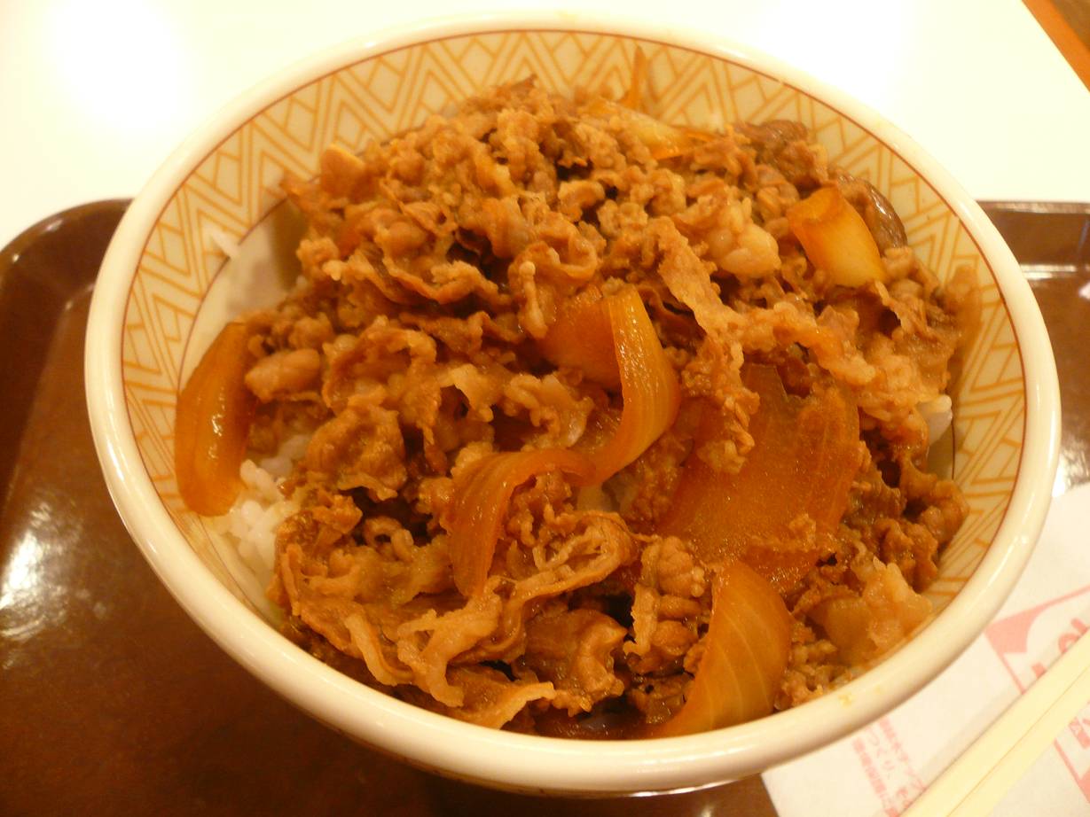 広島市中区八丁堀1-8 今日はふらふらとしていると「299円」という看板につられる。 これは安いですね。 ありがたい。 今日は金欠気味な懐の為にこちらをチョイスすることで。 意外とお客さんは少なめ。 安いのにもったいないなぁ・・・。 牛丼299円。 牛肉にはあまり味が残ってない。 そして意外としょっぱい。 甘さもある。 濃いのでご飯がわしわし食べれるのは嬉しいね。 途中で飽きると七味を加えて食べるとありがたいね。 ってよりこの値段が魅力かな? ありがとうございます。 ご馳走様でした。