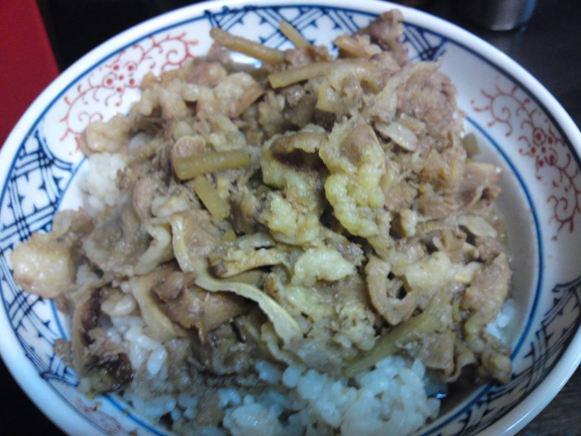 広島市西区横川2-4-26 今日は広島銀行の横川支店にあるお店。 以前は『長谷川商店』さんがありその後、『Koria辛い屋』 さん・『番屋』さんと変わったところ。 いや、その前に牛丼屋さんがあったか。 どうもコロコロ変わってしまう。 安くてありがたい店が続くのだが・・・。 牛丼380円。 かなりかなり出汁のたっぷり入ったつゆだく丼だ。 食べると椎茸の味がしっかり出た甘めのタレだ。 ごぼうが入ってる具も面白い。 肉は少し臭みがあるかなぁ。 でも安いしありがたい。 ちょっと個性的な牛丼になってます。 また食べたいし安いけど、次は日替わりのメニューもあったのでそっちかな。 ご馳走様でした。