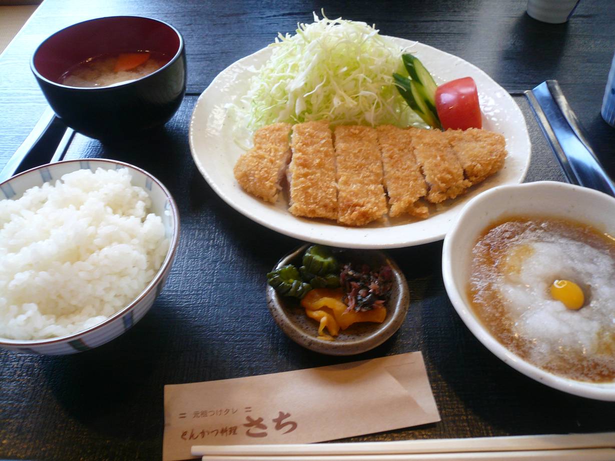 広島市中区堺町2-4-27 082-232-3022 今日は、とんかつデー。 どうしてもとんかつを食べたいと相方からの希望で自分も行きたかったお店へ。 とても落ち着いたお店でサービスがきびきびしてるので嬉しい感じ。 メニューも多いので何を食べようかな? 特選ロースかつ1,580円。 ここの特徴は何故か衣がはがれやすい。 そしてその衣が分厚い。 だから横にあるタレで浸して柔らかくして食べるらしい。 食べてみるとあっさり食べれるねぇ。 これはこれで旨いが衣の味が強くて肉の味が分かりにくいなぁ。 今回は幻霜ポークの特選肉だけに特にかもしれない。 タレはあっさりしたたれでウズラの卵と大根おろしが効いてるね。 面白い事は面白い。 ジャンボロースかつ定食1,580円。 実は今だけ100円引きでこの値段。 お肉は190gとなかなかのボリューム。 やはりこちらも衣が厚い。 そう言えば普通のソースはどうだろうと思いかけてみる。 ソースは意外と辛口かも。 特徴あるね、って言うと相方から「すりゴマが無いから甘味が弱く感じるだけだよ」。 なるほど。 なかなか特徴的なお店ですね。 平日ランチが850円らしいので次はこちらかな? ご馳走様でした。