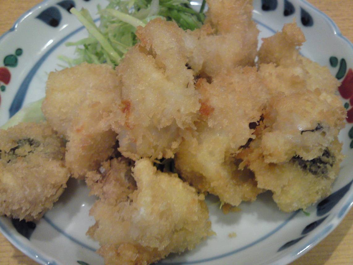 広島市西区横川町3-5-27 082-231-6664 今日は横川でも行ったことのない居酒屋さんへ。 『kitchin YOSHIKI』 さんの2階にある店。 こちらは上では親が下では息子さんがお店をやってるらしい。 こちらは和風の居酒屋さんでフグがメインみたいだ。 しかしグランドメニューを見ると洋食も多い。 これは下から持ってくるみたいだ。 なるほど、便利だね。 ハモフライ420円。 ハモってこの時期? って気になるけどありがたい値段で食べれる。 ハモは香りがあまりないし骨が結構気になるけどなんだかハモっぽさも感じる。 フライで食べるとサクサクしてるし嬉しいね。 他にもいろんな魚があったけど次はフグだな。 後は洋食か! ご馳走様でした。